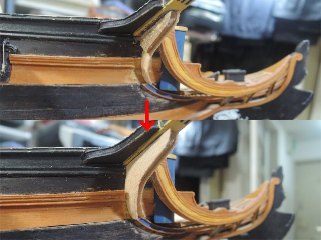 Каждый раз смотрю, и каждый раз меня не покидает ощущение, что носовая фигура, которую тебе прислали, раза в полтора, если не в два, больше нужного. Такому украшению корабль третьего ранга позавидует - даже там фигуры гораздо меньше.