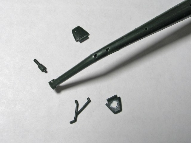 А ещё сделаем справа микро-отверстие для крепления тросовой антенны. Оно в наборе никак вообще не обозначено, поэтому придётся ориентироваться "на глазок".