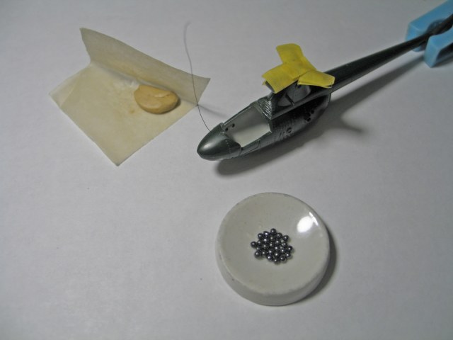 А вот для балласта, ради аутентичности, использовал родной кусочек пластилина из комплекта, но дополнил его 1 граммом мелкой дроби, поскольку выбрал расположение балласта не у носа, а ближе к центру (дабы не портить вид кабины):