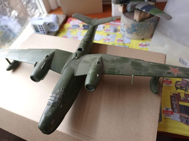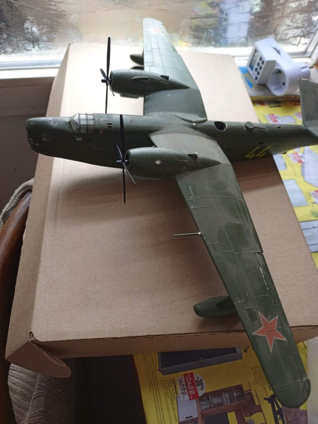 Давно хотел такую красивую птицу и вот мне её подарили. Теперь буду доводить её до ума. Работы много, самолёт реально огромный для 72 го масштаба. Накачал чертежей, фоток, за образец взял работу на Скале. Зелёный цвет красиво смотрится, но не исторично.