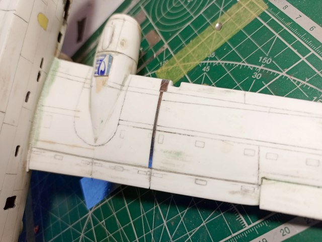 Помню стройку " трубач не нужен", по хорошему если уж начали пилитЬ, то стоило бы сделать наплывы мотогондол, в сочленении с крылом, а не просто обводы,да и геолокатор или как его там, на брюхе тоже бы не помешал.
