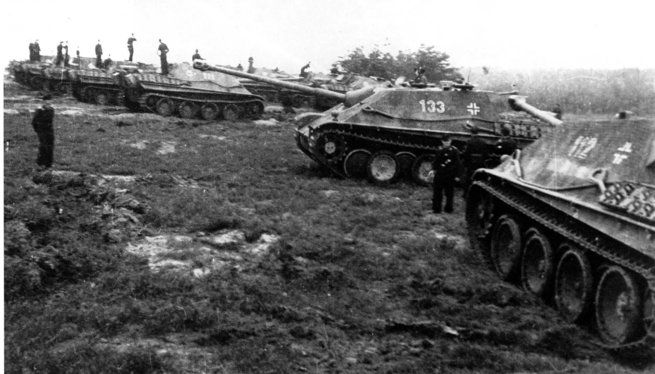 Но вот беда! Я нашел фото 44го года как раз Jagdpanther боевой единицы на марше и увы без экранов! И следующая за ней тоже без экранов! Но может ветром сорвало? А может экипаж просто понял, что реальной функциональности в них нет никакой и это никакая не "очень важная" штатная деталь защиты машины! На подобии очень "функциональных" вундер-апгрейдов немецких конструкторов типа циммерита, устройств установки оборудованния для передвижения под водой на тиграх (ни разу не использовалось в реальных условиях), дополнительных бронелистов для защиты гусениц на лобовой части первых тигров и пр. ерунда! Но может я и ошибаюсь и их просто теряли в процессе эксплуатации и в боях! Но в любом случае проблемой это не является! Если очень нужно, то покупаете соответствующее травление или изготавливаете сами!