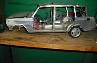 Делал из жести пивных банок по чертежам, старался скопировать до последней дырочки. Лампочки, поворотники, стопари все есть и работало, сейчас валяется отдельно со всеми проводами и управлением(проводное). Есть радио управление от детской машины, которую дети раздолбали, но пока не приспособил, ждет своего счастливого часа...