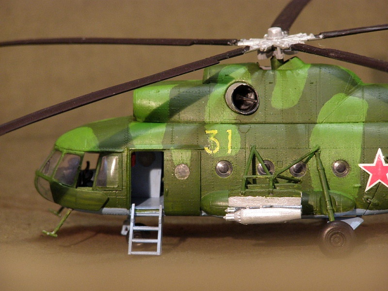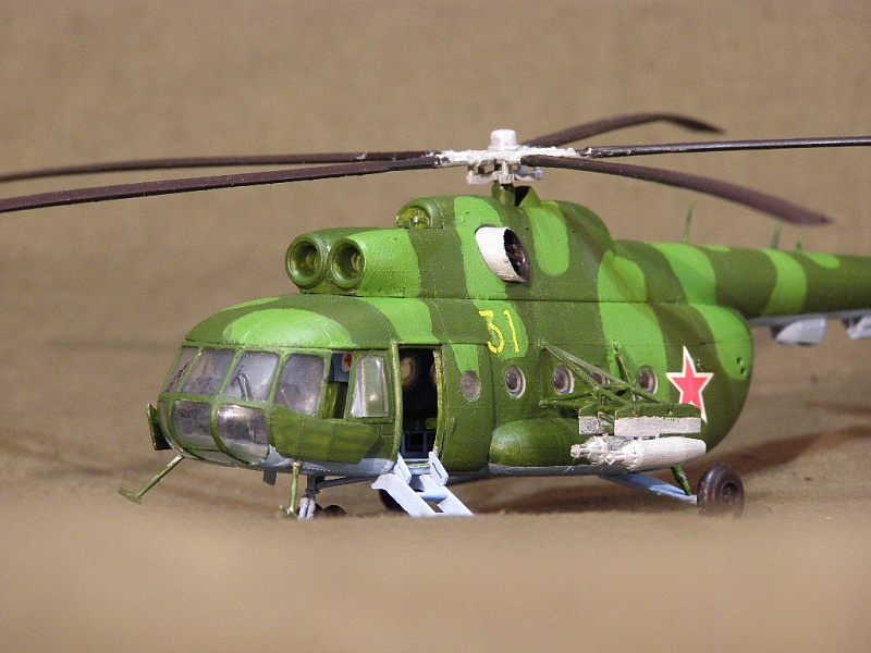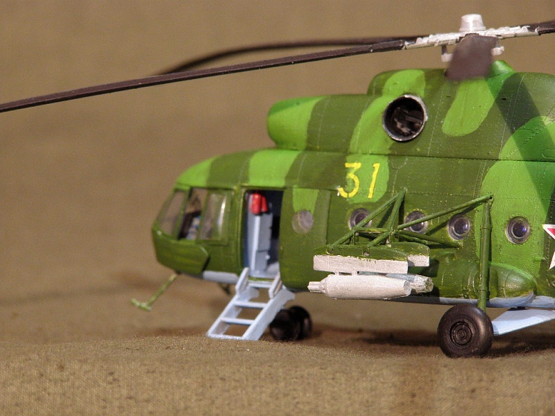 Модель собрана полностью из каропки, от себя добавил только аптечки в кабине. При сборке не возникало больших трудностей, пришлось только повозиться с блоками НУРС и фюзеляжем.