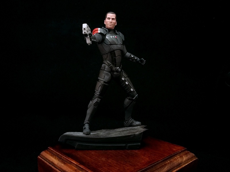 | Здравствуйте! Краски – Звезда, Green Staff World. Смола, 90 мм. Подставка – Деревомодельщик. «Мне пора идти.» Джон Шепард – человек, военнослужащий Альянса систем, капитан. Командир кораблей «Нормандия SR-1» и «Нормандия SR-2», первый человек-Спектр, временный оперативник «Цербера», спаситель Галактики. Главный герой игр Mass Effect, Mass Effect 2 и Mass Effect 3. Для Шепарда игрок может выбрать пол, внешность, навыки и предысторию. Имя Шепарда также выбирается игроком, но никогда не появляется в игре. По умолчанию имя Шепарда-мужчины – Джон, а класс – солдат с профилем «Землянин/Уцелевший». Шепард родился 11 апреля 2154 года. Капитан – выпускник специальной программы Альянса подготовки элитных бойцов N7 (номер контракта 5923-AC-2826). В 2183 году Шепард служит на экспериментальном фрегате-разведчике «Нормандия SR-1», исполняя обязанности старшего помощника. Позднее Шепард становится первым человеком, принятым в состав Специального Корпуса Тактической Разведки (СПЕКТР). Возможно, погиб, жертвуя жизнью для спасения Галактики в 2186 году на Земле. Спасибо за внимание! |