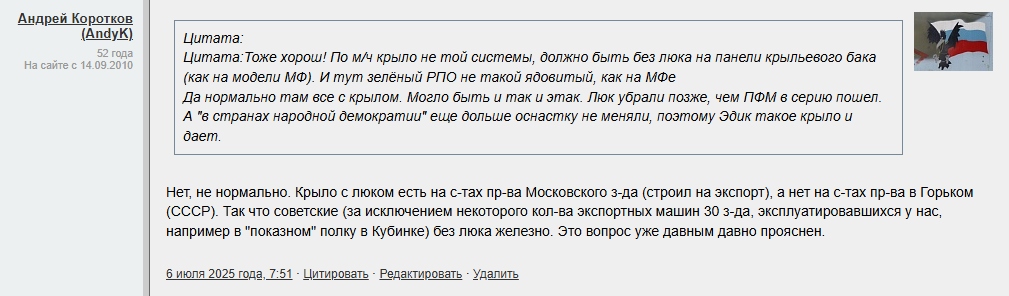 Так Эдик с натуры делал, а у них были с-ты московского завода, т.е. с люками на крыле