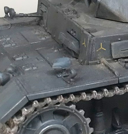 Про траки - это тоже умора! У Вас они обычно блестят как полированные и толкатели видны! Видимо немчура из вечером от нечего делать полирует! Для 35го масштаба - это явный залет! Но где Вы у автора нашли следы от толкателей?
