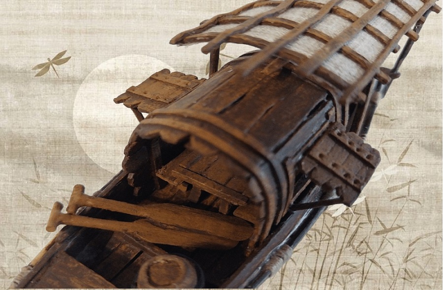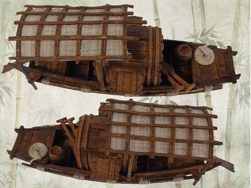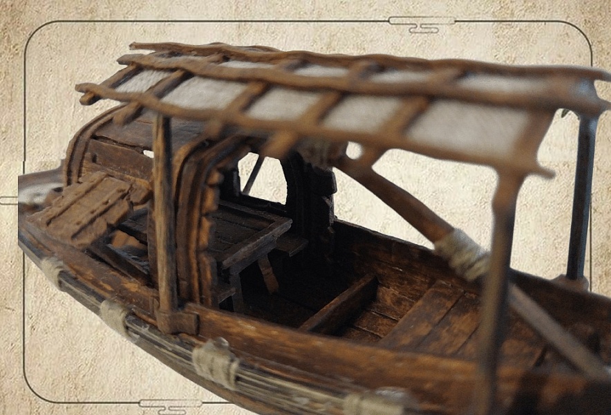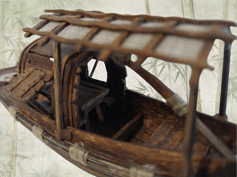 Наличие навеса. Крупные сампаны оснащались закрытой палубой и надстройками, а на корме и в центре корпуса часто сооружался навес из циновок.