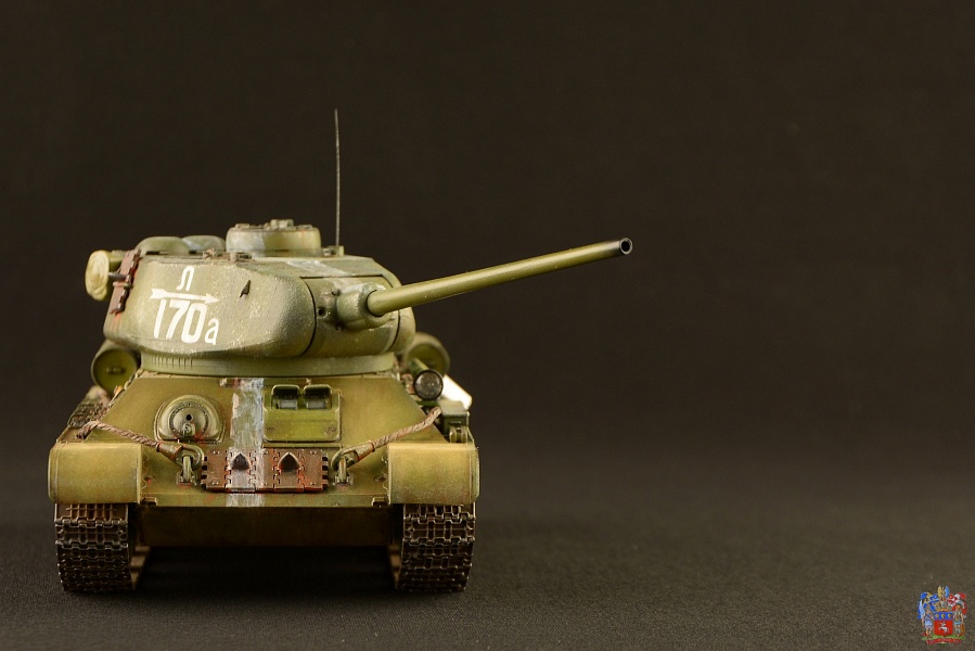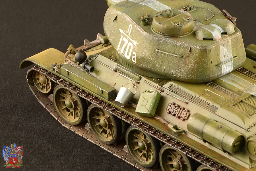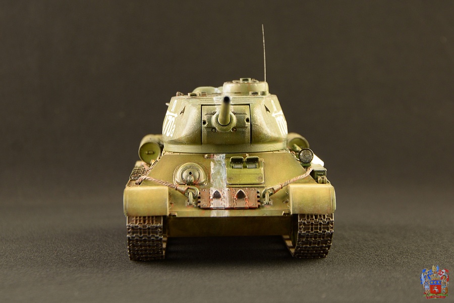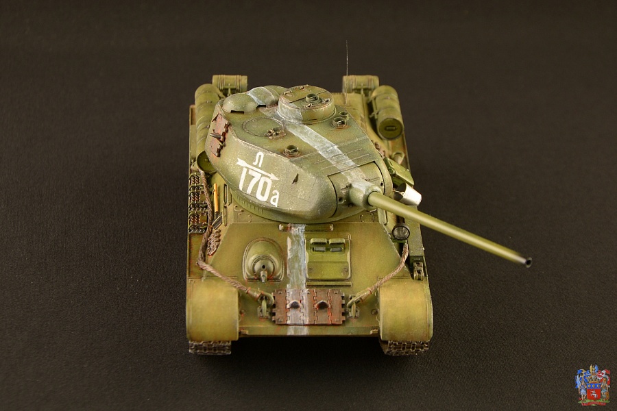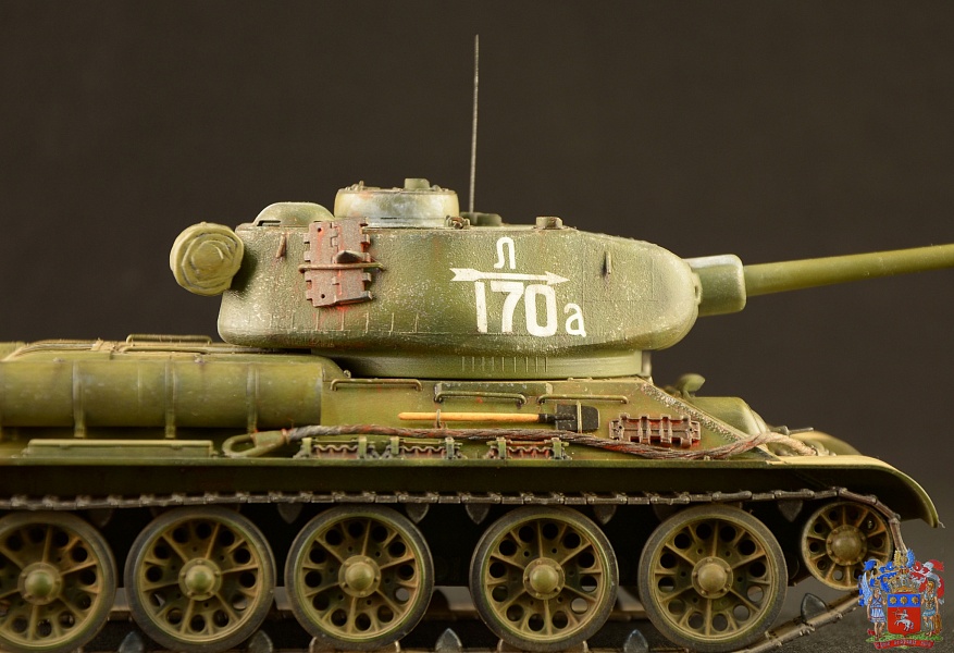 Траки с брони нужно убрать либо закрепить, трос должен быть витой а не просто скрученная проволока. Трос в помойку, на фото работа как 1/72, вместе с траками заржавел и корпус и башня.. не аккуратно.