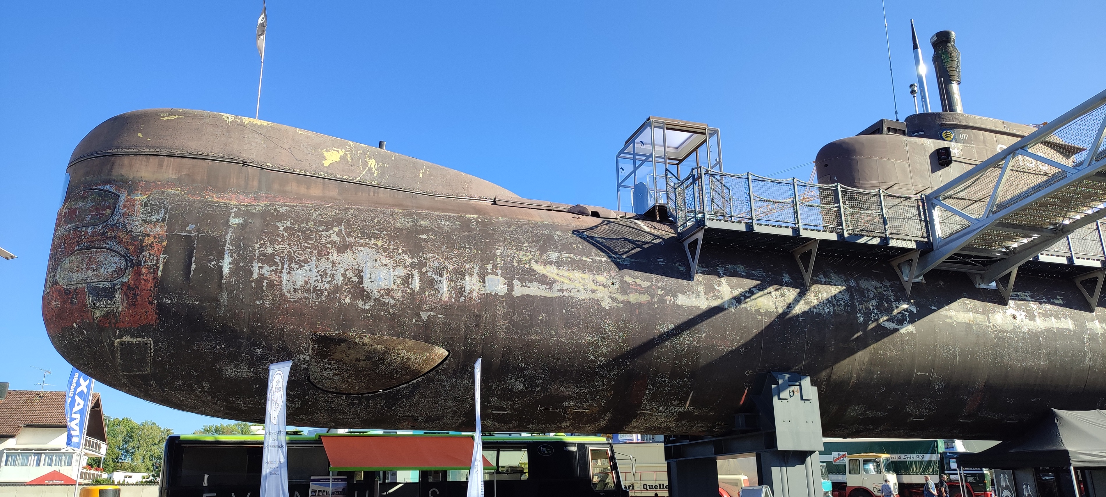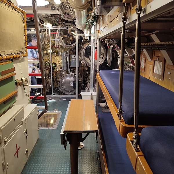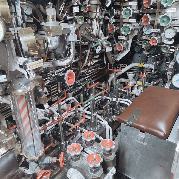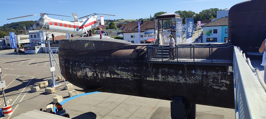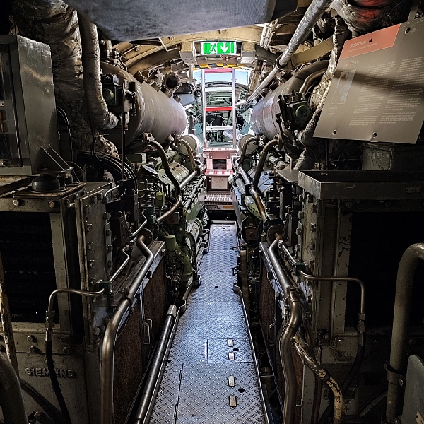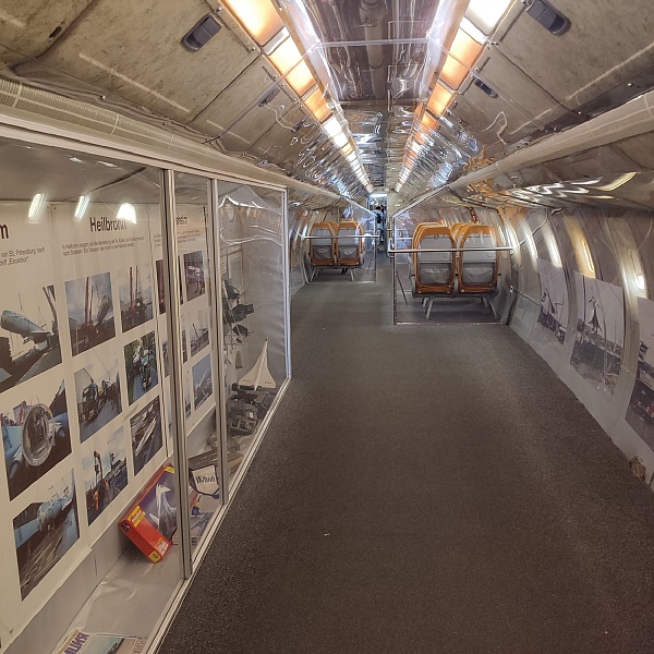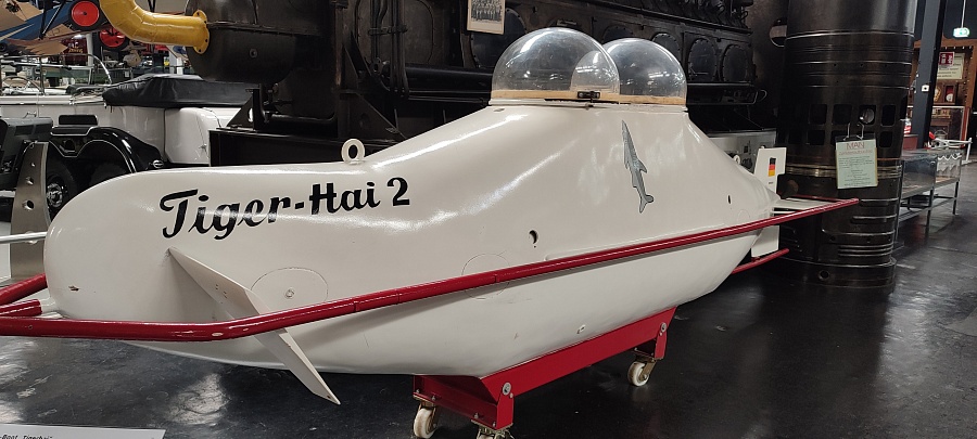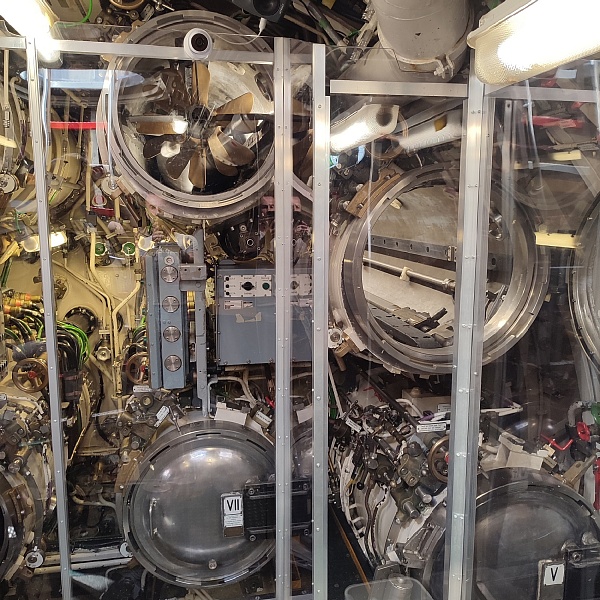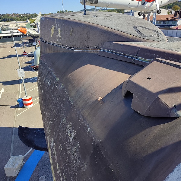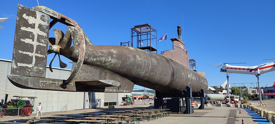 Самые крупные бриллианты коллекции, которые видны задолго до входа в музей и сразу бьют наотмашь, - это Конкорд, Ту-144 и немецкая субмарина U-17. На подходах к ним и внутри установлены экраны с видео и стенды с фотографиями, на которых показано, как эти экспонаты доставляли в музей. В подводной лодке транслируются разные «глубоководные» звуки, как в кино показывают: эхолот, песни китов, бульканье, продувание балластных цистерн. Погружение в обстановку в самом полном смысле слова. Реально ощущаешь на себе чудовищную клаустрофобию и величие морских глубин. Можно присесть за столик в кают-компании, покрутить вентили и рукоятки управления, рассчитать курс и стратегию боя на морской карте. В перископ видно Ту-144 (внезапно).