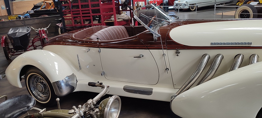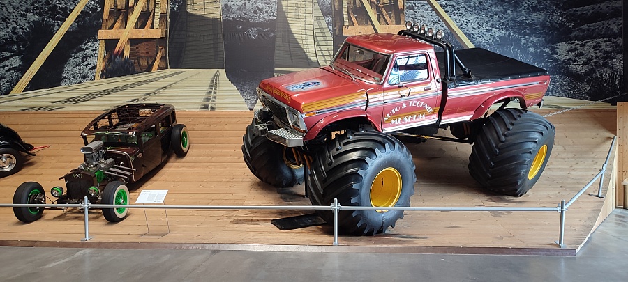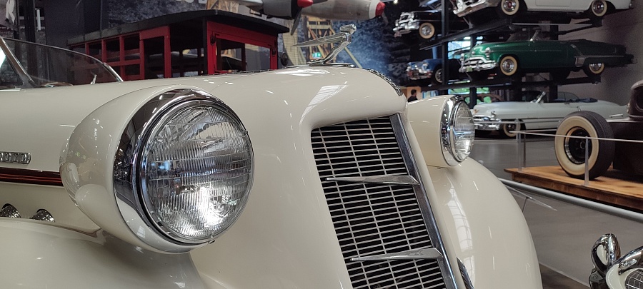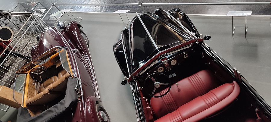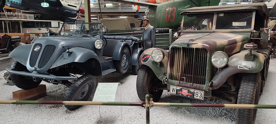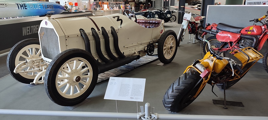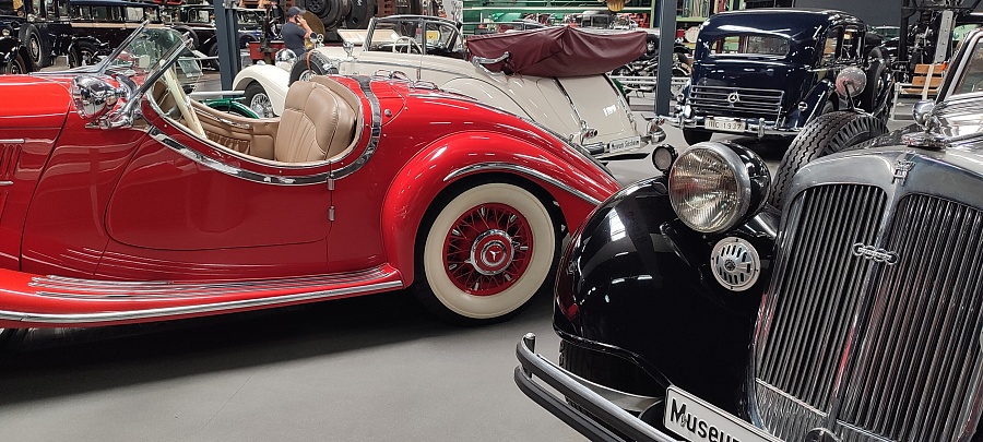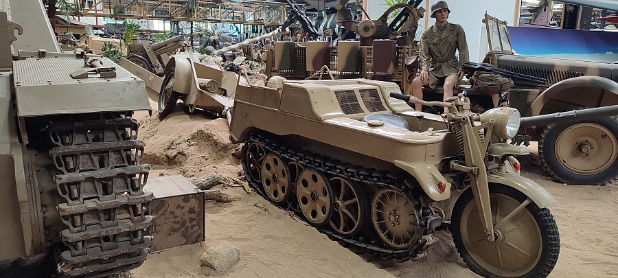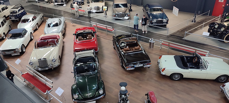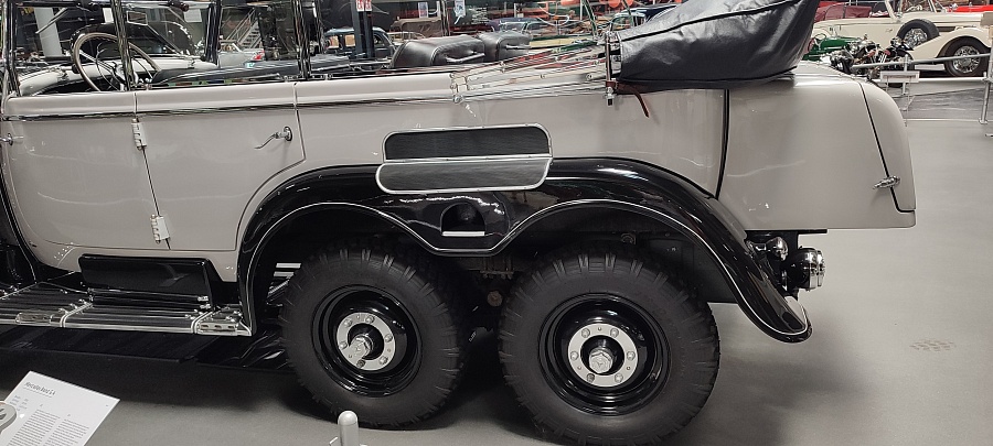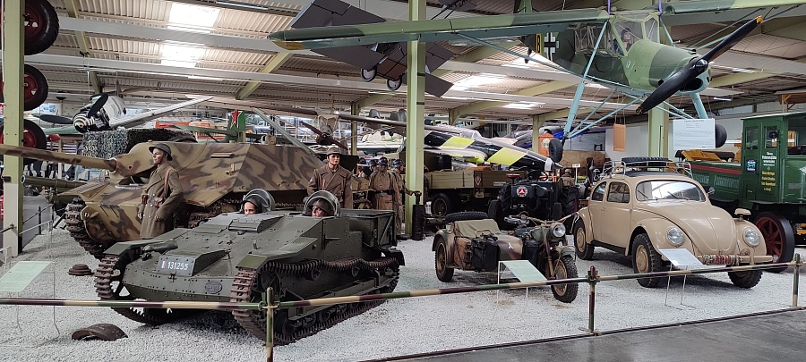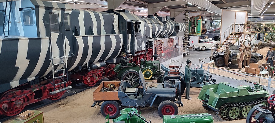 Огромное количество машин, мотоциклов, грузовиков, тракторов, танков, пушек, гоночных болидов, военной и прочей техники невозможно описать. Большинство экспонатов, как заявлено, находятся в том виде, в котором они поступили в музей. Военная техника довольно потрёпанная, часто с явными следами боевой эксплуатации, а какой-нибудь Майбах или Бугатти тридцатых годов наоборот, - с идеальным покрытием, без единого скола или царапины.