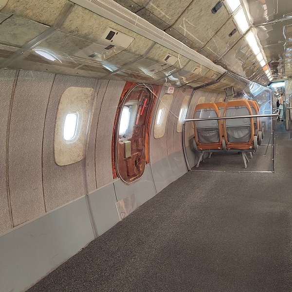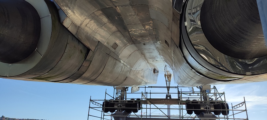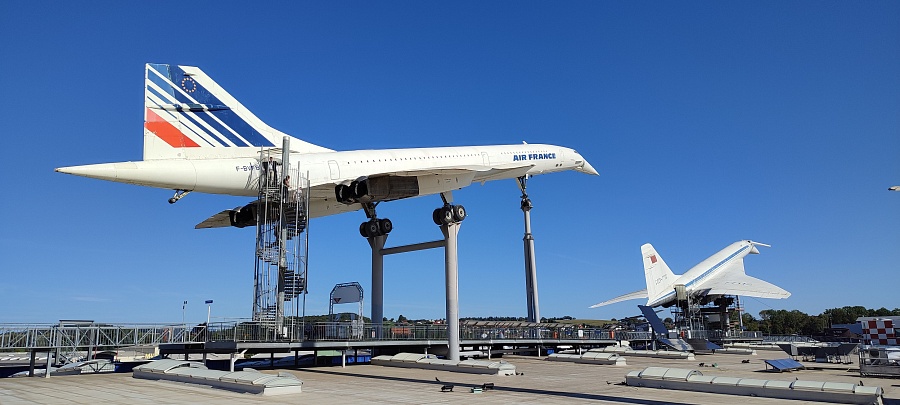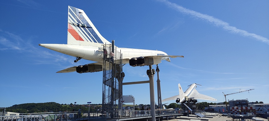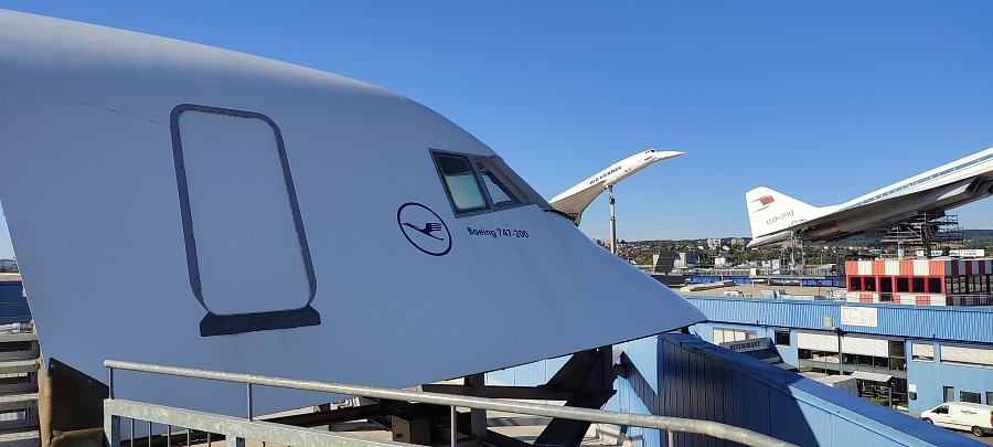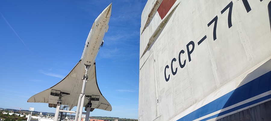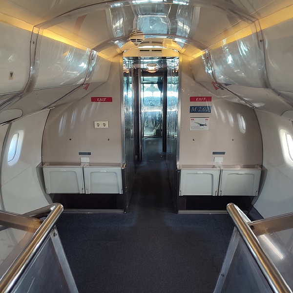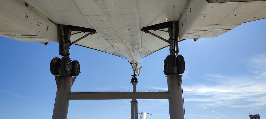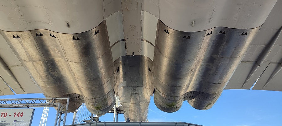 Суперсоники – это восторг и экстаз! Для удобства перемещения внутри салона пассажирские кресла частично убраны, кокпиты, кухни, туалеты и гардеробные отсеки закрыты прозрачным оргстеклом. У обоих самолётов приоткрыта основная дверь и есть сегменты со снятой обшивкой салона, которые дают представление о конструкции фюзеляжа и внутренних системах. Двигатели Конкорда сняты с самолёта и установлены внизу в ангаре на отдельном стенде. Ту-144 был куплен для музея без двигателей, в гондолах стоят заглушки. Благодаря тому, что самолёты находятся в непосредственной близости друг от друга, можно наглядно сравнить, чем они похожи, в чём различаются, и какие инженерные решения применены в одном и другом случае.