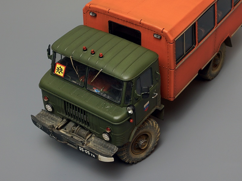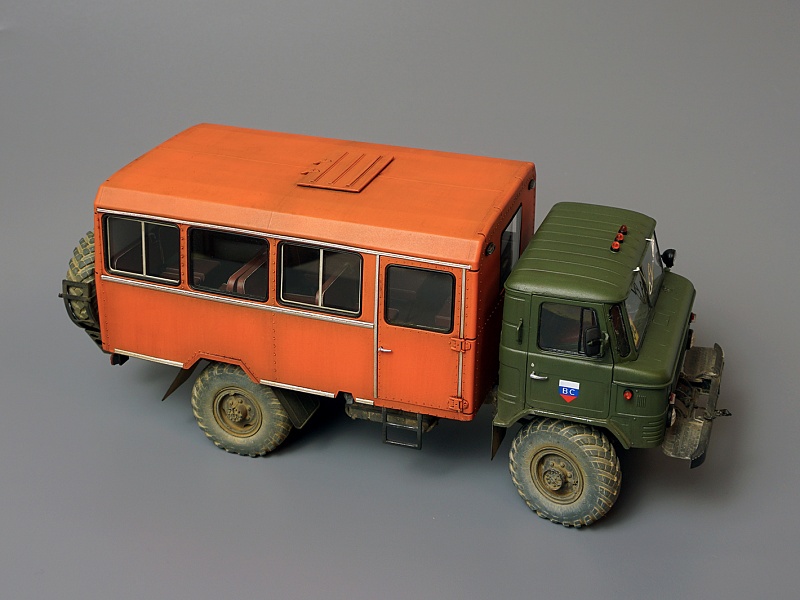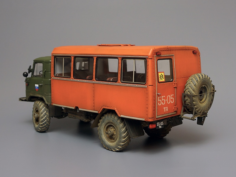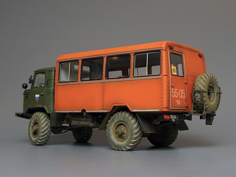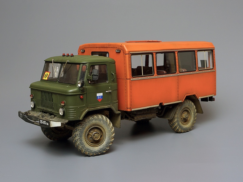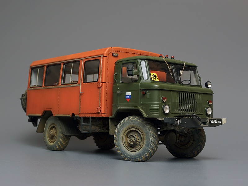 | Приветствую, друзья! После небольшой перерыва вернулся в строй и закончил сборку своего тестового конверсионного набора вахтовки НЗАС-3964 на базе Газ-66. Базовое шасси от Звезды подверглось нескольким изменениям: - убрал с лонжеронов надрамник кузова - сделал поворотный мост (выпилил из родного) по советам Дмитрия Горячева (канал Пыльная полка). Добавил несколько элементов из набора фототравления от Микродизайн. Самое главное, на мой взгляд - держатель запасного колеса. Не нужные части отрезал, далее все спаял в одну конструкцию, включая балки крепления к кузову (идут в комплекте конверсии). Колеса поставил от ЭВМ, на мой взгляд неплохие. Оптика от ТриА. На пол салона сделал резиновые коврики из широкого шлейфа ASUS (от компьютера). Красил все красками от 128 - защитный армии РФ (НК-621) без изменений, в рыжий (НК-300) добавил немного красного. Следы эксплуатации без фанатизма - пигменты, смывки, матовый лак. Прототип: машина по воспоминаниям Максима Осадченко, возила детишек военного городка в Ленобласти в школу. Период - середина 1990-х. Итоговый состав сборки: - база, набор Газ-66 от "Звезды". - конверсионный набор НЗАС-3964 от ASK - фототравление от Микродизайн - колеса с нагрузкой от Э.В.М. - 3Д декали от приборных панелей от Quinta Studio - 3Д декали брызговиков, мелочей в кабину (Беломорканал, зажигалка и иконки) от Embase - оптика от ТриА Студио - краска, сымвки, пигменты и тп - 128 Всем приятного просмотра! |