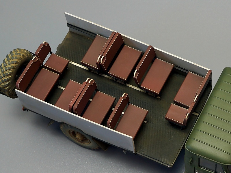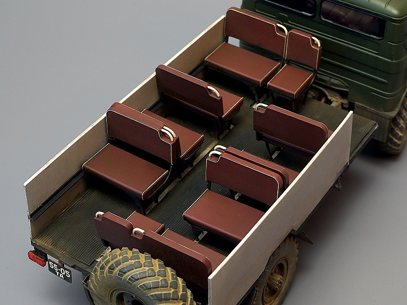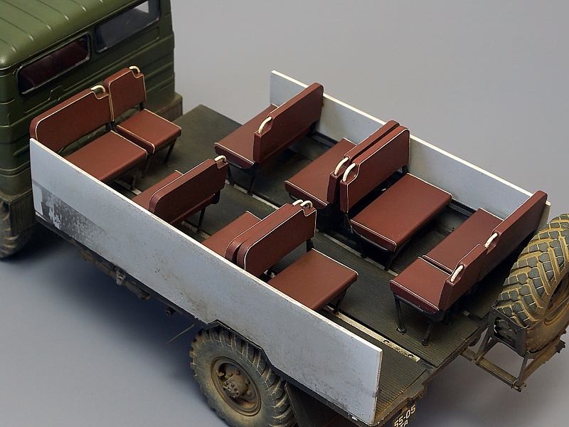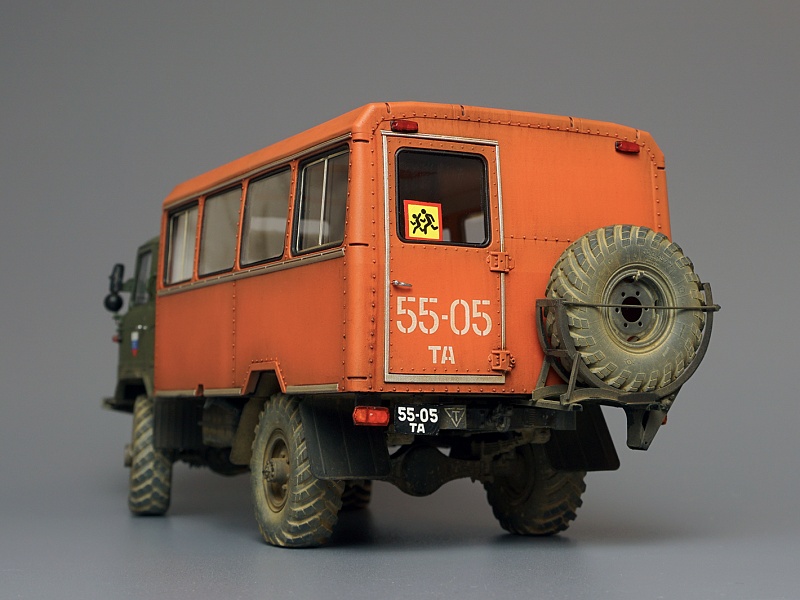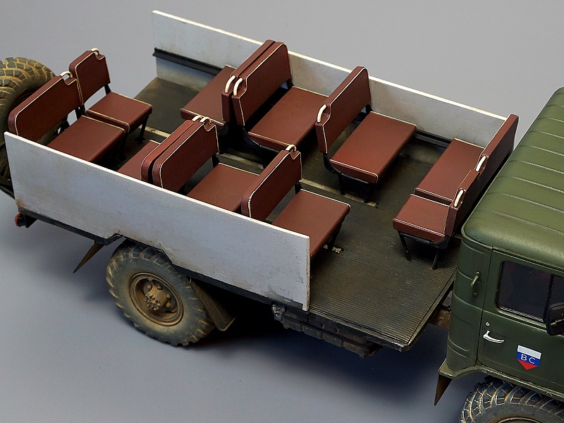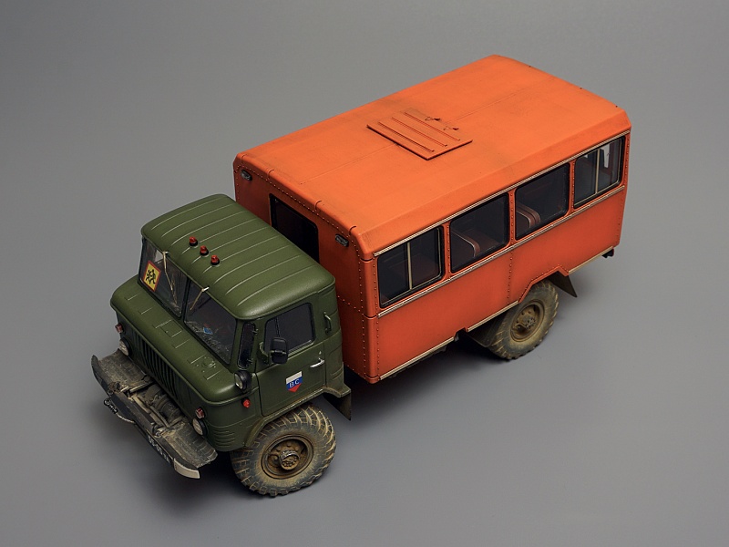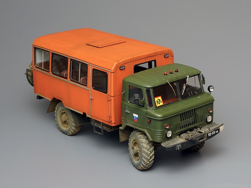 | Приветствую, друзья! После небольшой перерыва вернулся в строй и закончил сборку своего тестового конверсионного набора вахтовки НЗАС-3964 на базе Газ-66. Базовое шасси от Звезды подверглось нескольким изменениям: - убрал с лонжеронов надрамник кузова - сделал поворотный мост (выпилил из родного) по советам Дмитрия Горячева (канал Пыльная полка). Добавил несколько элементов из набора фототравления от Микродизайн. Самое главное, на мой взгляд - держатель запасного колеса. Не нужные части отрезал, далее все спаял в одну конструкцию, включая балки крепления к кузову (идут в комплекте конверсии). Колеса поставил от ЭВМ, на мой взгляд неплохие. Оптика от ТриА. На пол салона сделал резиновые коврики из широкого шлейфа ASUS (от компьютера). Красил все красками от 128 - защитный армии РФ (НК-621) без изменений, в рыжий (НК-300) добавил немного красного. Следы эксплуатации без фанатизма - пигменты, смывки, матовый лак. Прототип: машина по воспоминаниям Максима Осадченко, возила детишек военного городка в Ленобласти в школу. Период - середина 1990-х. Итоговый состав сборки: - база, набор Газ-66 от "Звезды". - конверсионный набор НЗАС-3964 от ASK - фототравление от Микродизайн - колеса с нагрузкой от Э.В.М. - 3Д декали от приборных панелей от Quinta Studio - 3Д декали брызговиков, мелочей в кабину (Беломорканал, зажигалка и иконки) от Embase - оптика от ТриА Студио - краска, сымвки, пигменты и тп - 128 Всем приятного просмотра! |