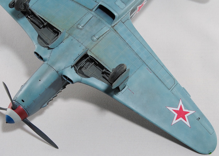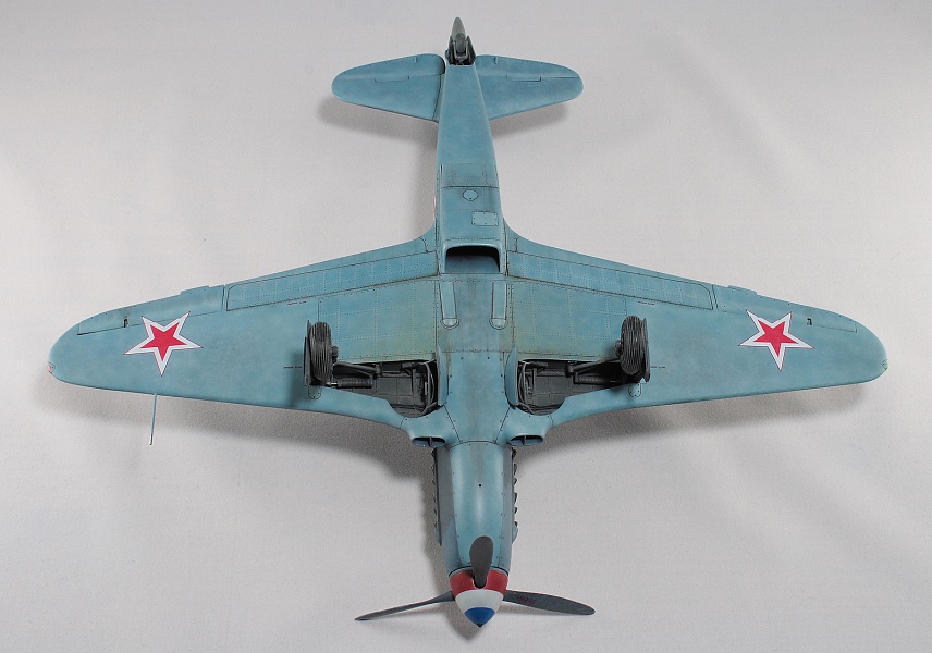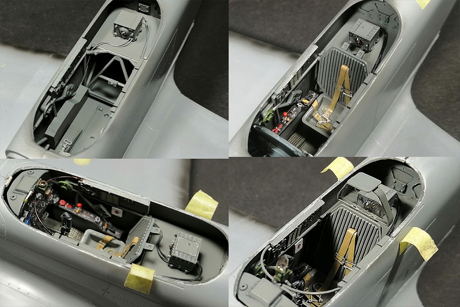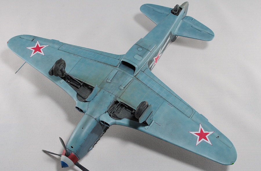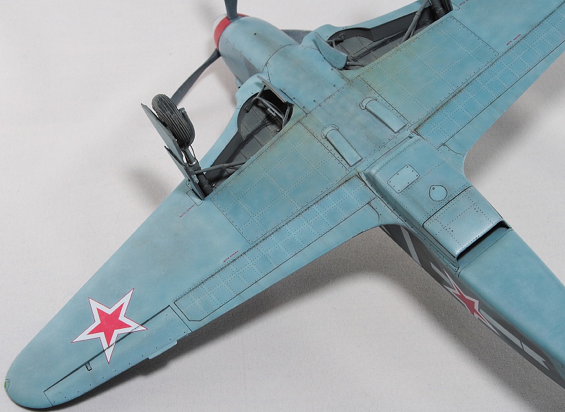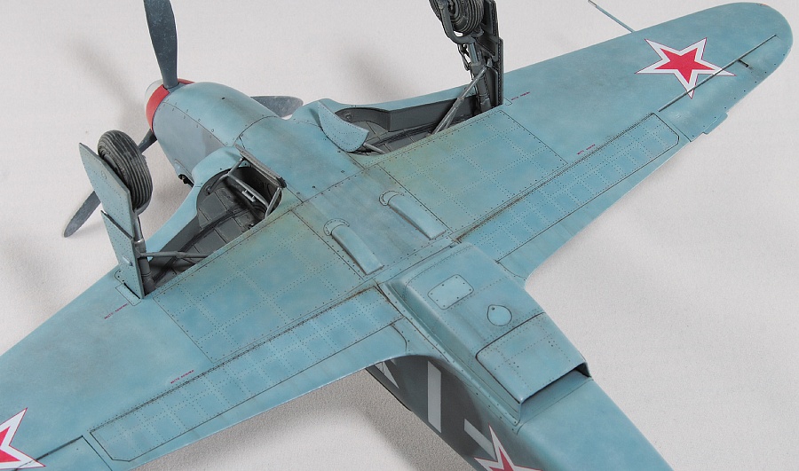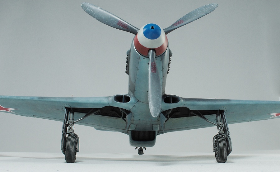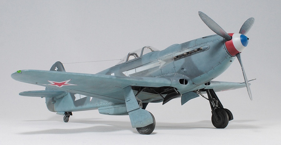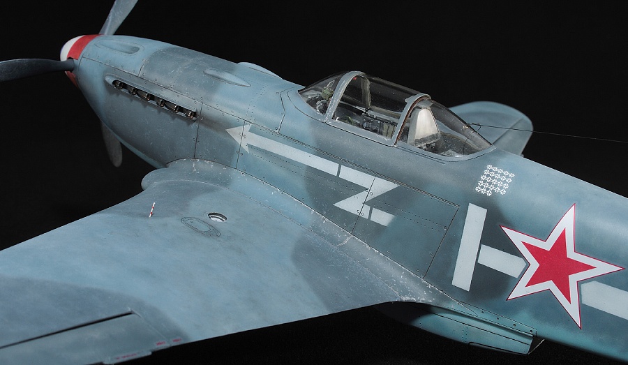 Здравствуйте, коллеги! Это не первая сборка модели Як-3 от SH. Модель попала ко мне на сборку не совсем комплектной. Некоторые пластиковые детали отсутствовали. Вместо них были в наличии детали из смолы. Была собрана смоляная кабина. Всё это пребывало не в лучшем состоянии. Поэтому сборку начал с разборки. Разобрал смоляную кабину, силовой набор кабины заменил пластиковым, оставшимся от предыдущих сборок. Поменял заднюю полку на пластик и установил смоляную радиостанцию РСИ-4 от СМК, добавил проводку. Смоляное кресло пришлось оставить. Т.к. привязные ремни отлиты в смоле, кромку чашки сиденья обтачивать не стал, заменить ее было нечем. После сборки и окраски кабины она была оклеена интерьерным набором Квинта. С приборной смоляной доски спилил кислородный прибор и наклеил его на приборную доску «Квинта». Стекло для прицела вырезал из тонкого прозрачного пластика. Далее была сборка крыла. Не самая простая установка ниш в пространство крыла. Все надо подгонять, натягивать с усилием иначе верхние и нижняя детали не сомкнутся. Установил топливомеры. Сточил заднюю кромку. Внутрь крыла «накидал» обрезки литников и подогнал, что бы верхние половинки лежали плотно. После склейки половинок крыла и просушки клеевого шва, придал форму воздухозаборникам, которые практически не читались. Прошпаклевал вз с внутренней стороны и вклеил перегородки. На крыле были отрезаны элероны. Подготовил посадочные места и установил на штифтах смоляные рулёвки. Цветным прозрачным пластиком сделал АНО. В ниши добавил проводку. Перед тем как склеить половинки фюзеляжа, поправил форму кромки обтекателя патрубков, сделав её из прямого угла, округлой. Наглухо с внутренней стороны заклеил места установки патрубков. Сами патрубки отделил от основания и расточил. Установил их уже после сборки и окраски. В местах для переноса хвостовой части сделал имитацию заклеек. Стыковка, практически, любого узла в этой модели требовала усилий. Шпаклевка применялась повсеместно. В своей ранней статье по сборке аналогичной модели я уже писал про проблемы сборки. В этот раз ничего не изменилось. Повторяться не буду. В верхней крышке капота рассверлил отверстия для имитации огневых труб и вклеил трубочки подходящего диаметра. Из фольги сделал обтекатели тяги на руль направления. Кок отпечатан по 3D технологии. Очередное спасибо Алексею Андрианову! Осталось только его слегка расточить и для имитации храповика вклеить латунные трубочки. Лопасти - смола. С установкой фонаря всё непросто. Садится на своё место он плохо. Если в прошлый раз использовал деталь остекления одной деталью. Сейчас поставил наборный фонарь. На фото видно, где пришлось снять толщину. На сдвижной части с внутренней стороны скальпелем сошкрябал толщину переплета. После отполировал и искупал в футуре. На внутренней стороне сдвижной части из проволоки сделал ручки и повесил тросик (вроде для сброса сдвижной части). Из двухкомпонентной шпаклёвки, сделал имитацию уплотнителя на задней части фонаря. Сделал и поставил зеркало заднего обзора. Но потом заметил на фото прототипа, что нет там зеркала. Пришлось оторвать. Сделал имитацию шлангов гидравлики на основные стойки шасси. Колёса - смола СМК. На задней стойке вырезал двухзвенник. Задний дутик – колесо из набора. Доработал проволокой механизм уборки створки н