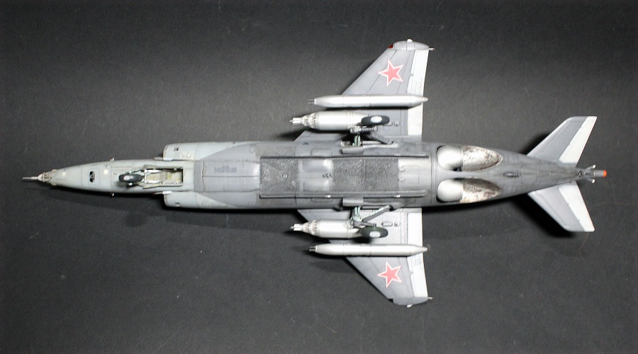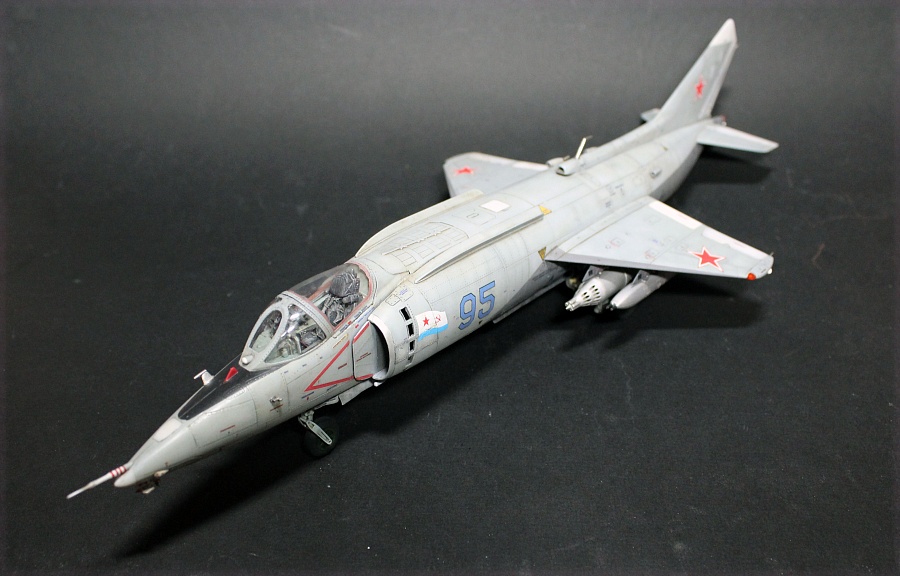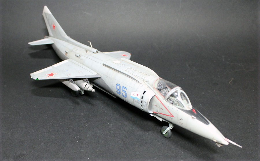 Судя по окнам перепуска на ВЗ и гребням на спине это скорее ЯК-38 без М. Но это на смотрибельность модели не влияет :-)