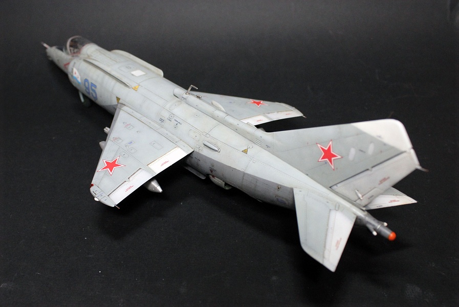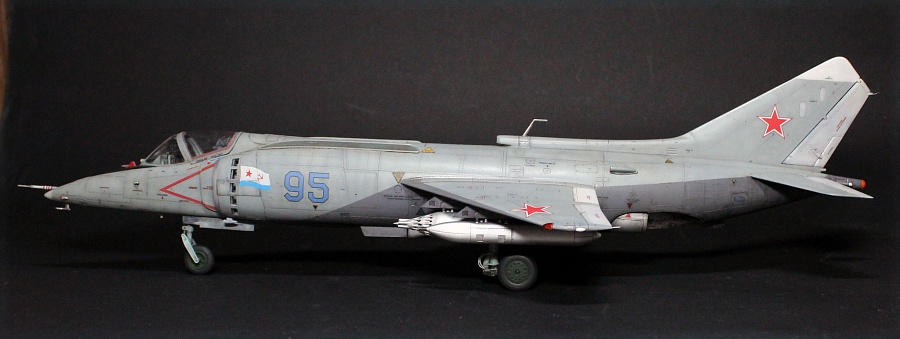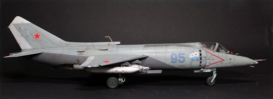 | Всем привет! Представляю вашему вниманию модель палубного штурмовика вертикального взлета и посадки Як-38М в масштабе 1/48 от Hobby Boss. Долго я собирался его построить, а потом еще долго строил, и вот он готов! А теперь о том, что сделано: - заменил кабину на смоляный комплект от Aires Hobby Models - заменил воздухозаборники - сымитировал жаропрочные накладки на днище и бортах - исправил нижние газоотражающие гребни - новые створки сопел подъёмных двигателей из АБС-пластика - новые жаропрочные панели сопел подъёмно-маршевого двигателя из дошипласта - аварийный самописец "Опушка" от QuickBoost - немного переделал основные опоры шасси и добавил трубки гидравлики - нанес 3D-клепку от Emboss - окраска красками Mr.Hobby, Tamiya, Pacific, Хася Моделист - комплект декалей по индивидуальному заказу из архива личных фотографий - немного затонировал маслом - и еще много мелочей На этом вроде бы всё. Приятного просмотра. |