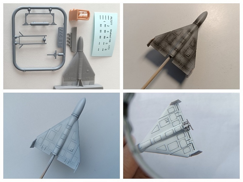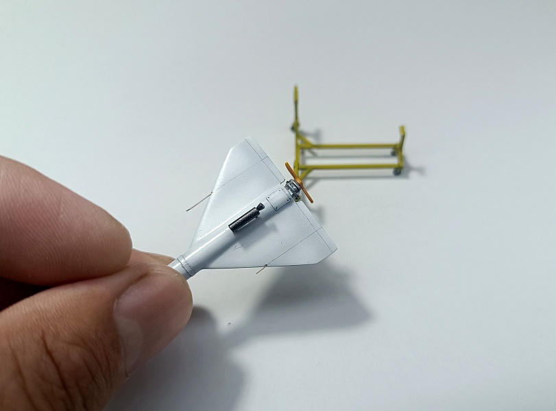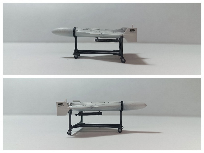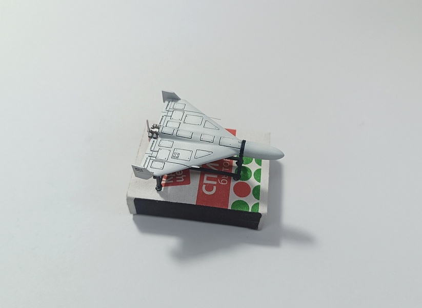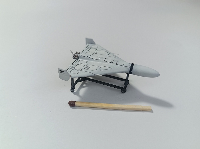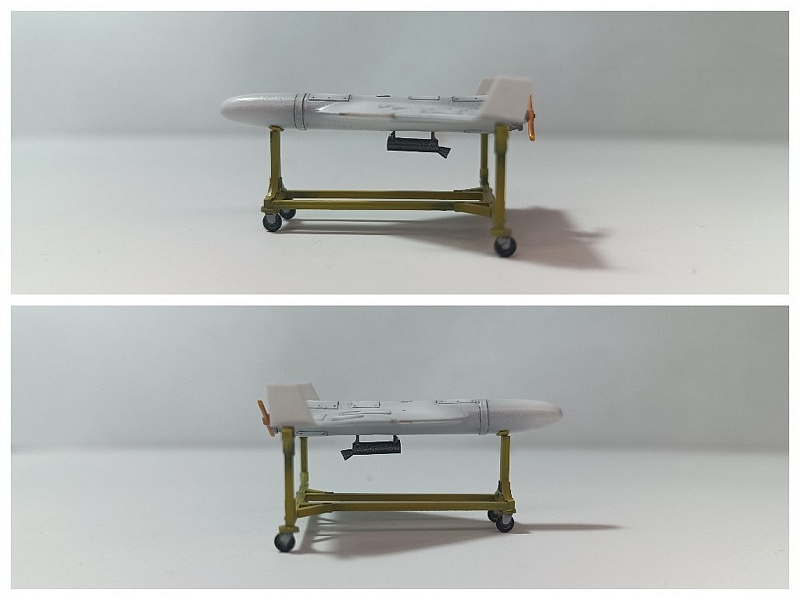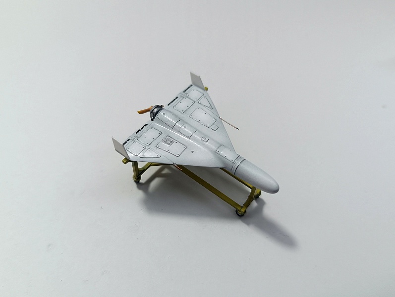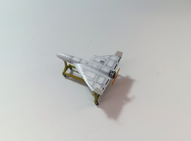 Приветствую уважаемые коллеги! Представляю вашему вниманию пару ударных БПЛА-камикадзе, Герань-1 и Герань-2(HESA Shahid-131, Shahid-136)...https://pikabu.ru/story/tekhnicheskiy_analiz_shahed_136_i_131_geran_2_i_1_9594020?ysclid=mg56ys9qhz845266461 Герань-2 от Planet Models, корпус модели отлит из смолы, небольшая рамка из пластика, с деталями для телеги и 3Д печатная мелочевка. Собрал в прошлом году без доработок, только добавил клепку, на лючках. А вот с Геренью-1 пришлось повозится... исходник, 3д печатная модель Геран-2 от DYV-Models, ужасного качества. Брал на Озоне, чисто из любопытства, хотелось сравнить с чешской Гранью от Planet Models . По длине заметно короче чешской модели, на крыльях были утяжины!?, кромки в районе рулей высоты были поведенные, крой практически отсутствовал. Решил выпилить из этого набора Герань-1(Shahid-131), она меньше по размеру, немного укоротил корпус и уменьшил размах крыльев. Двухкомпонентной тамией зашпатлевал утяжины, лючки имитировал фольгой, двигатель и пороховой ускоритель делал с нуля, воздушный винт брал из чешского набора(там их два:)), ПВД из тянутой ватной палочки и тонкой проволоки. Телегу взял(для фото) из еще одного набора Герани-2 от Plaet Models, покрашенной в желтый цвет(вторую Герань-2 планирую красить в черный)), от туда же брал декали. Красил как обычно Ганзой, футура, смывка и полуматовый лак:)