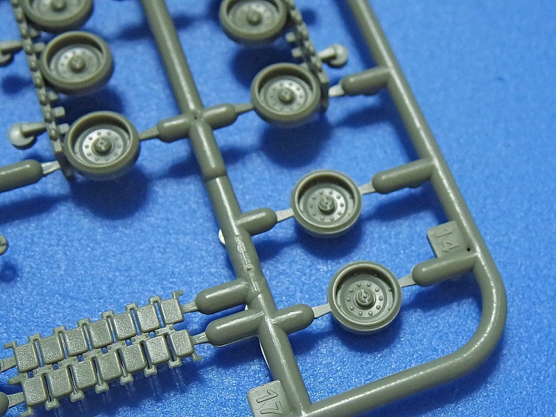 9 крупных в меру "зубастых" колес на тягач. и 42!!!!! (не пересчитывал) мелких дорожных колесиков на трейлер. По резине великих нареканий нет - для 72-го отлично проработано. Шов есть кое где, но вроде не критичный.