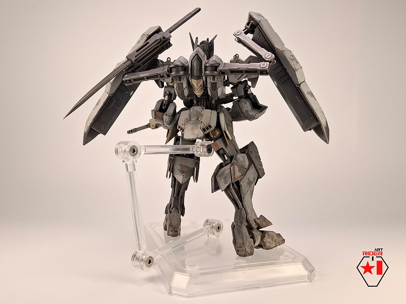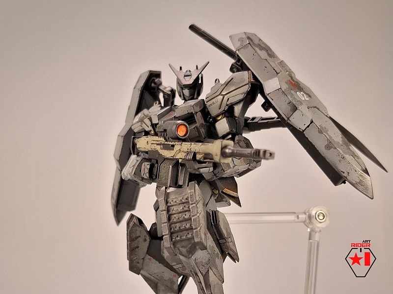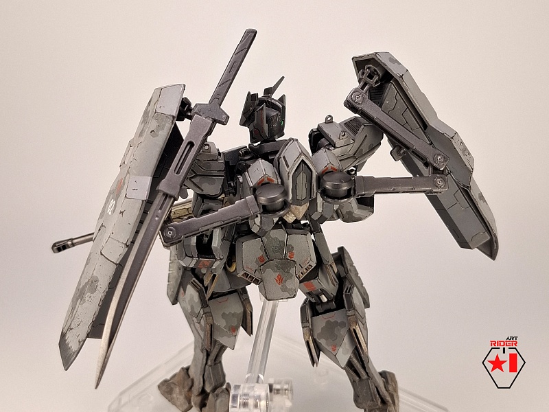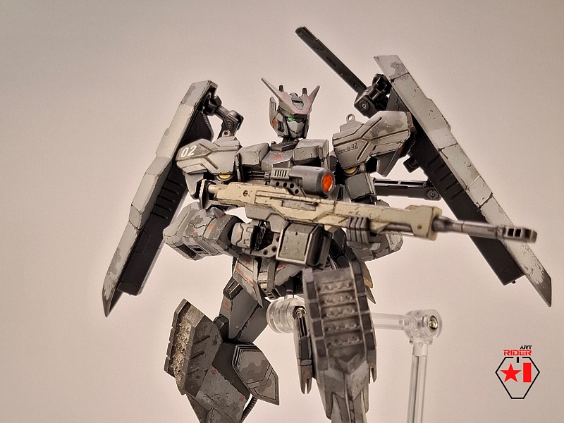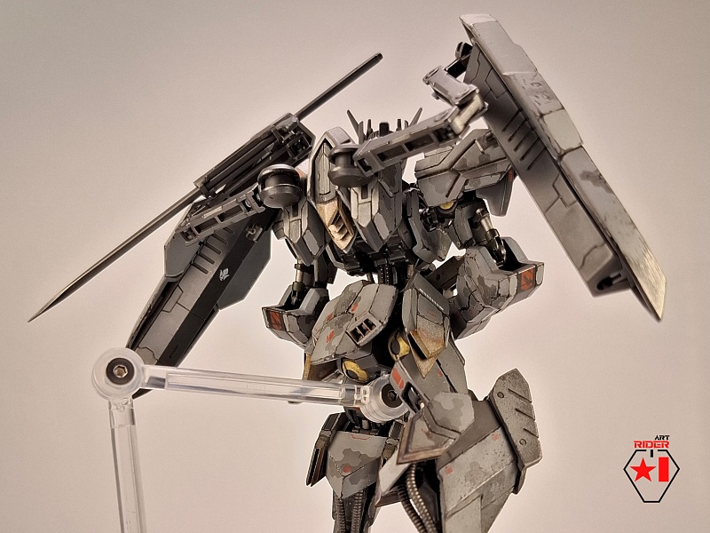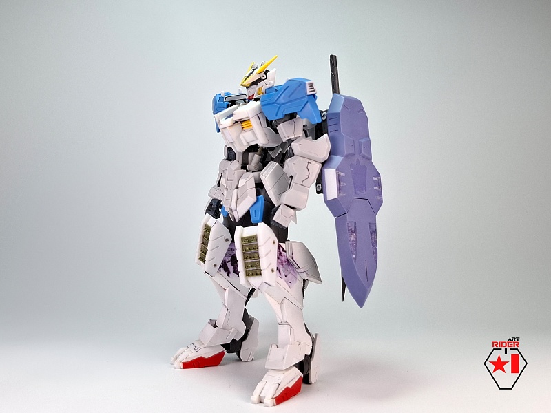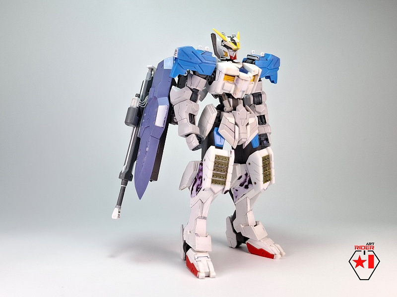 *Для постройки модели на запчасти были расканибалины три Бандаевких набора – ASW-G-08 Gundam Barbatos, ASW-G-66 Gundam Kimaris Vidar, ASW-G-ХХ Gundam Vidar. Заново были сделаны: броня голени и коленей, нагрудная броня, боковые реактивные двигатели на поясе. Частично переделаны, либо доработаны: элементы брони на голове, реактивный ранец, щиты и их манипуляторы, наплечники, броня плеч и предплечий, задний и передние элементы защитной юбки, ступни. Также переделки и доработке подверглось оружие ближнего и дальнего боя. В работе использован листовой пластик различной толщины, проволока медная / стальная. Высота готово модели примерно 12 сантиметров.