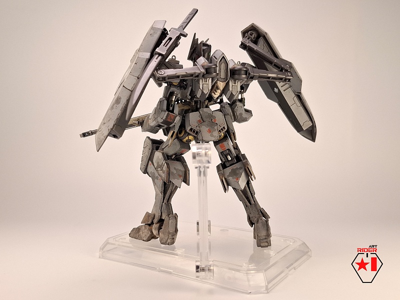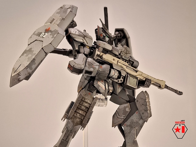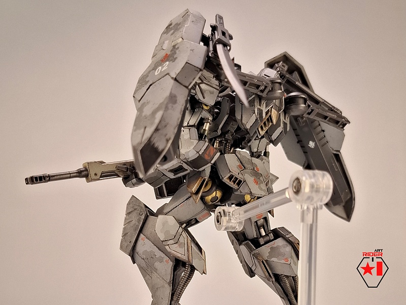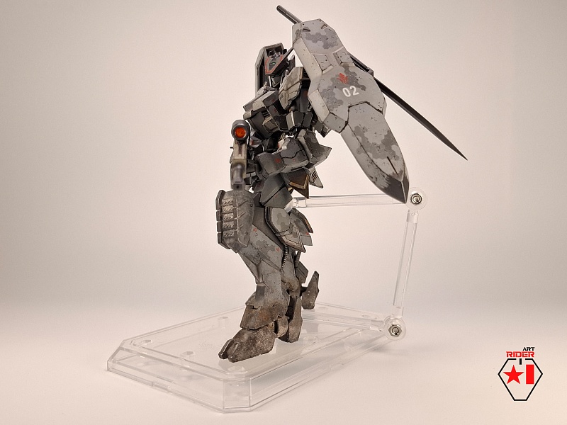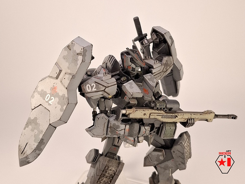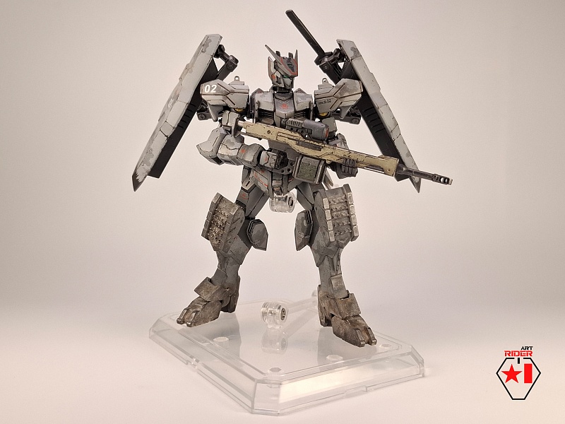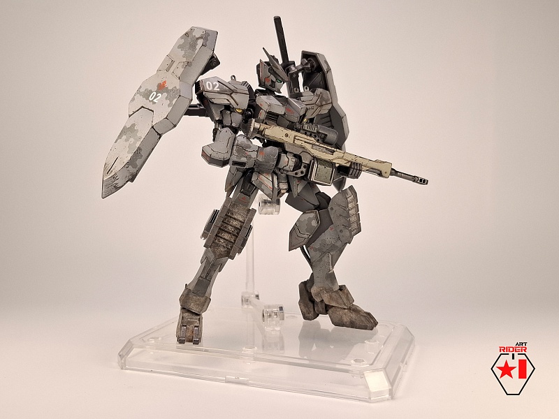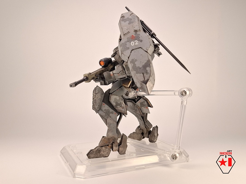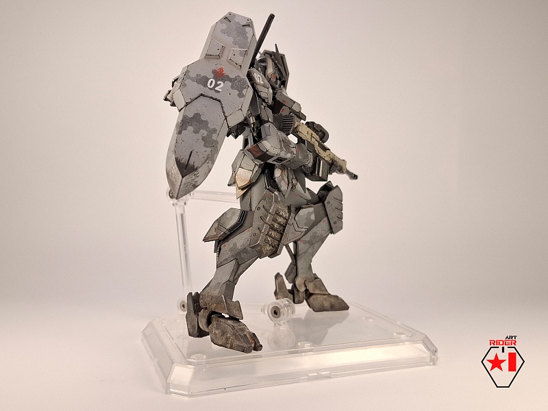 *Внешний вид всех 72 машин в сериале не раскрывается, видимо Бандай оставил себе задел на будущее), ну и свобода для творчества само собой. По этому, взяв незанятый номер и имя, решил строить сухопутную машину - универсальную, массивную, с элементами вспомогательной защиты в виде щитов на подвижных манипуляторах за спиной. К сожалению пластик у Бандая дружить с «художественным разбавителем №2» отказался, начав рассыпаться в руках уже на финальном этапе. О подобном слышать доводилось, тем не менее что случилось – то случилось. Удалось восстановить шарниры и броню голеностопа, но попачкать пришлось значительно больше, чем планировалось изначально. Так или иначе опыт и удовольствие от работы получены, определенно модель будет не единственной, но уже, надеюсь, без подобных приколов)