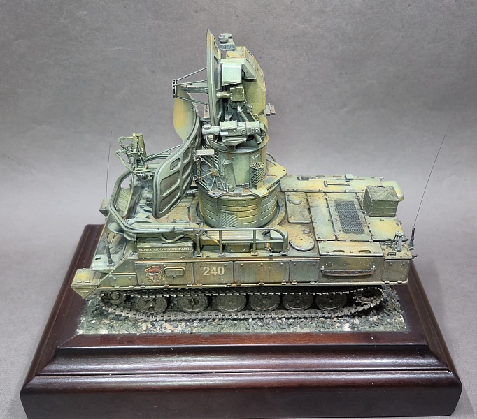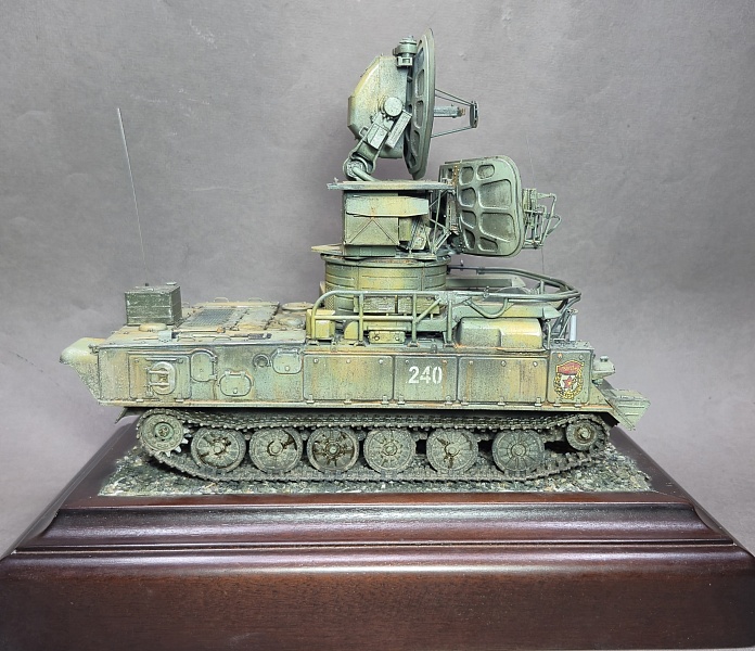 Модель интересная, хорошо, что сделали! Радар в названии не уважительно к этой машине. Это СУРН - самоходная установка разведки и наведения. Даже на коробке к набору это написано. Такая вот окраска тоже не типично к зенитно-ракетной технике. Ну ладно самоход в пыли и грязи, но антенное хозяйство почему в таком состоянии? Или это многолетняя "вечная" стоянка музейной техники под открытым небом? Вроде нет, и там следят за экспонатами, не говоря уже о технике в строю.
