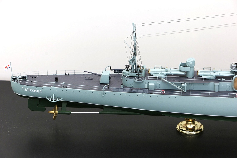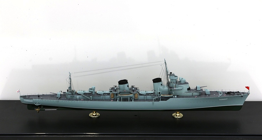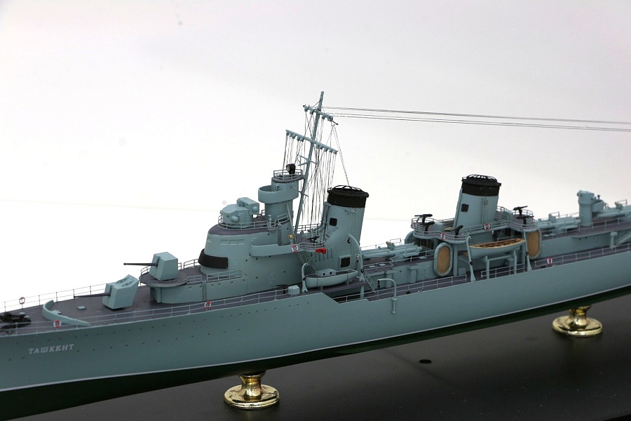 Представляю модель лидера Ташкент на 40-ой год. Жизнь эсминца была коротка, но смелая и геройская. Спущен на воду в 1937 и разобран на метал в 1944. Принимал участие в обороне Одессы и Севастополя. Купил на радости и думал быстренько соберу, стройка растянулась на четыре месяца.