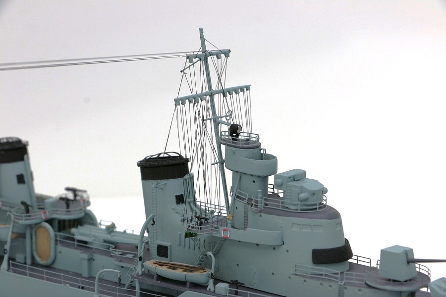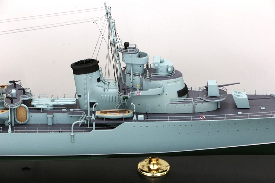 В целом, получилось не плохо, но есть и над чем поворчать. Сильно бросается в глаза, покраска подводной части, в районе миделя, она на мой взгляд должна быть чуть повыше. Якорные полуклюзы, тоже можно было немного доработать, и местами видна неаккуратная покраска. А вот за мачты, вам отдельный респект, я бы скорее всего не стал заморачиваться с пайкой. И у меня вопрос, а почему вы не взяли набор травления от Микродизайна?