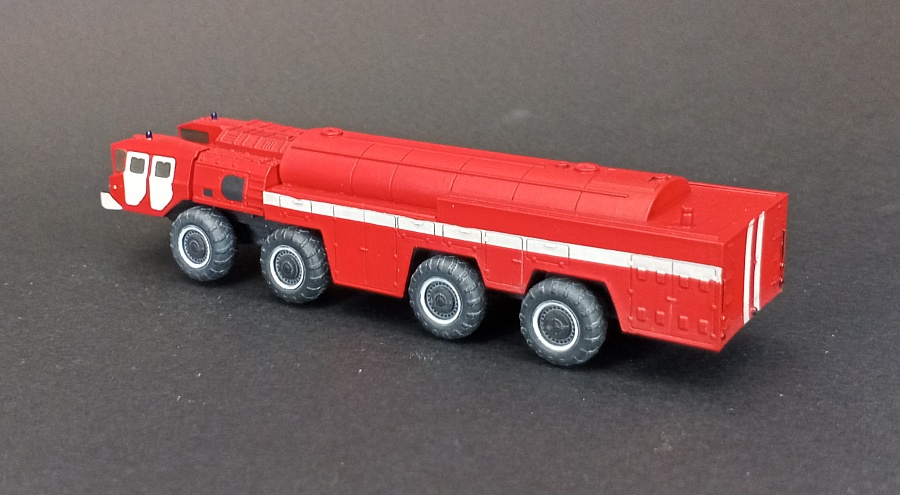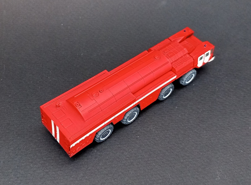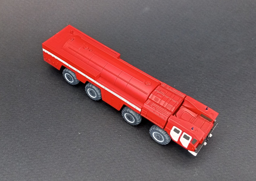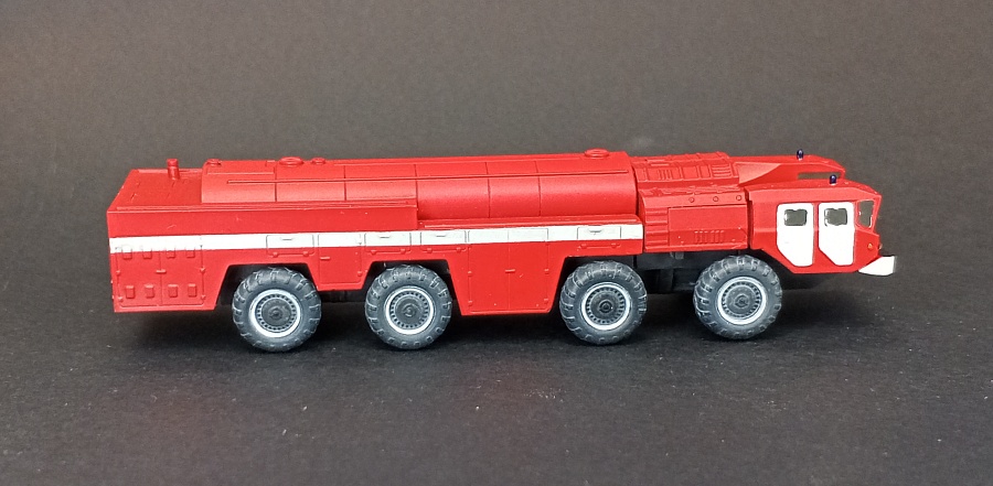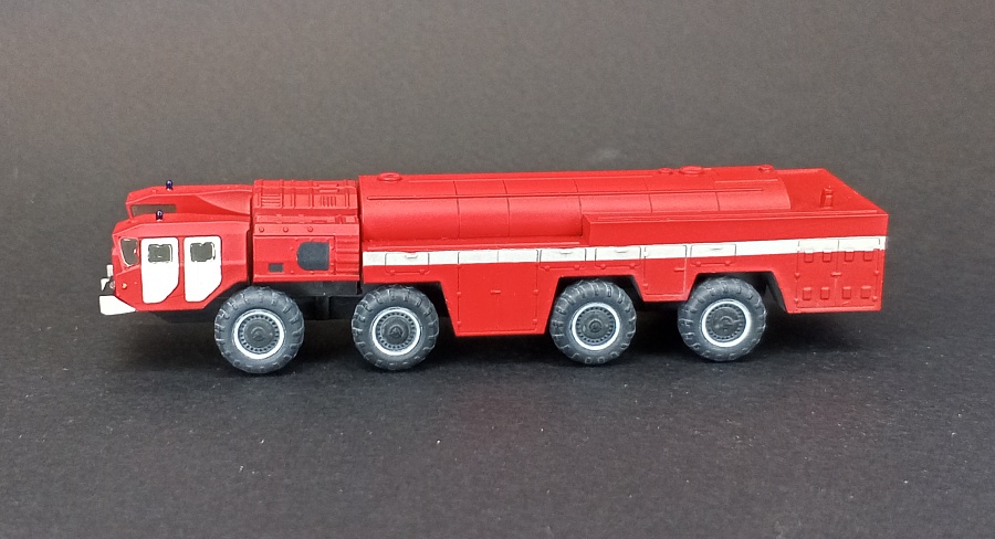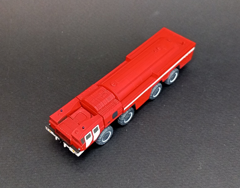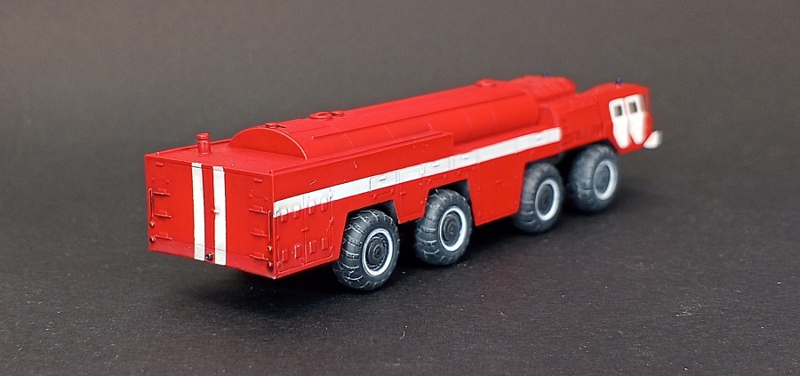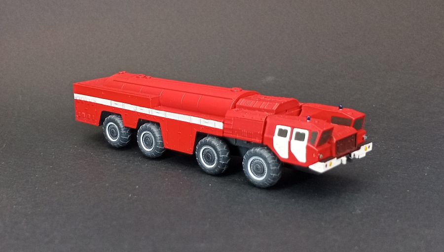 | Представляю модельку аэродромной пожарной машины на шасси МАЗ-543 в клопическом 144-м масштабе. Модель сама по себе неплохая, необходимо только слегка подогрев выпрямить раму. Из недостатков я бы отметил отсутствие водомётной пушки (или как она там называется) расположенной между кабинами. Грунт и краски Ганзой. Полоски наносил путём маскирования лентой. Приятного просмотра... | |