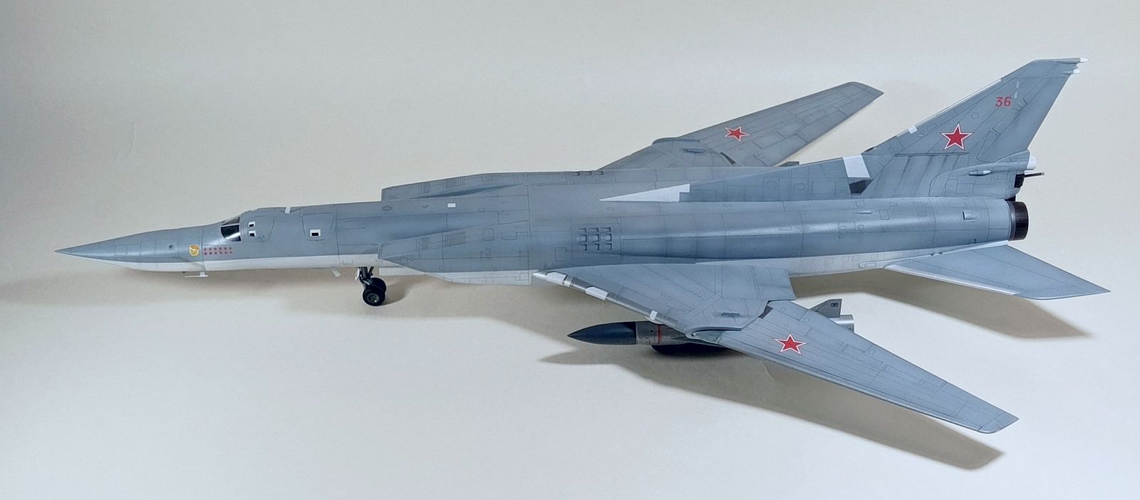 | Доброго Вечера.Очередная моя работа всем известного дальнего бомбардировщика - ракетоносца.Первая моя модель от "Трумпа" да и первая такая большая.Тяжёлая модель в сборке , много минусов ; стыкуемость деталей ужасная,задние кромки киля,крыльев,стабилизаторов ну очень толстые,корпус фонаря просто тонет на 1 мм.Пришлось просто много пилить,точить ну шпатлевать.Порадовала расшивка с заклёпками на сколько она верна даже и не вникал. От себя; пропилил воздухозаборники на обтекателях двигателей и киле,сделал левый правый АНО на крыльях в воздухозаборниках основных изготовил из пластика клинья,сопла родные оставил в кабине пилотов тоже всё родное в закрытом положении там всё равно не видно. Красил нитро красками.Смывка маслом.Декали родные.Пачкал не особо.Косяки и не точности конечно имеют место быть,без них ни как.В целом результатом доволен модель похоже на прототип. Приятного Просмотра. | |