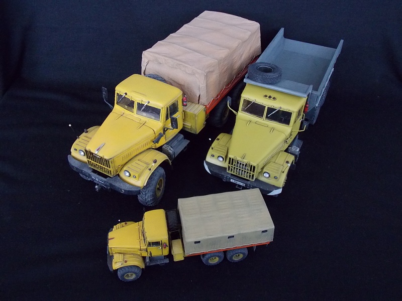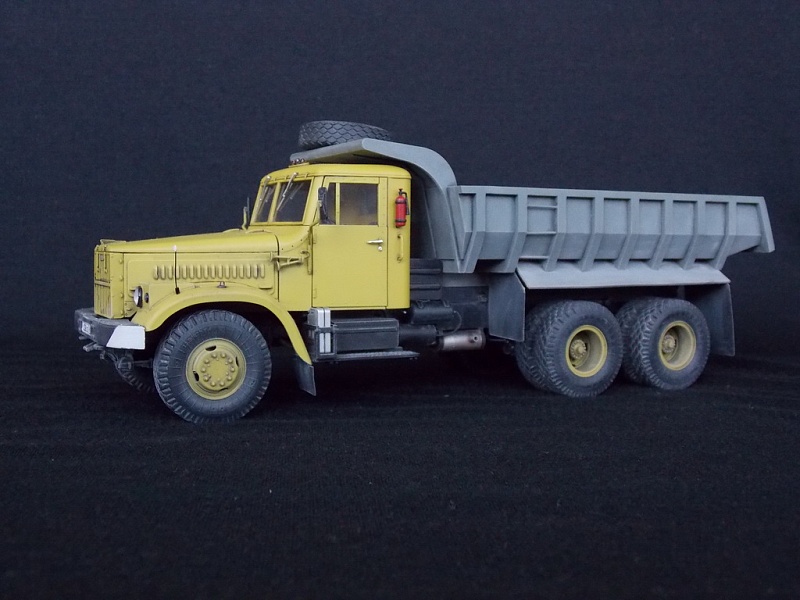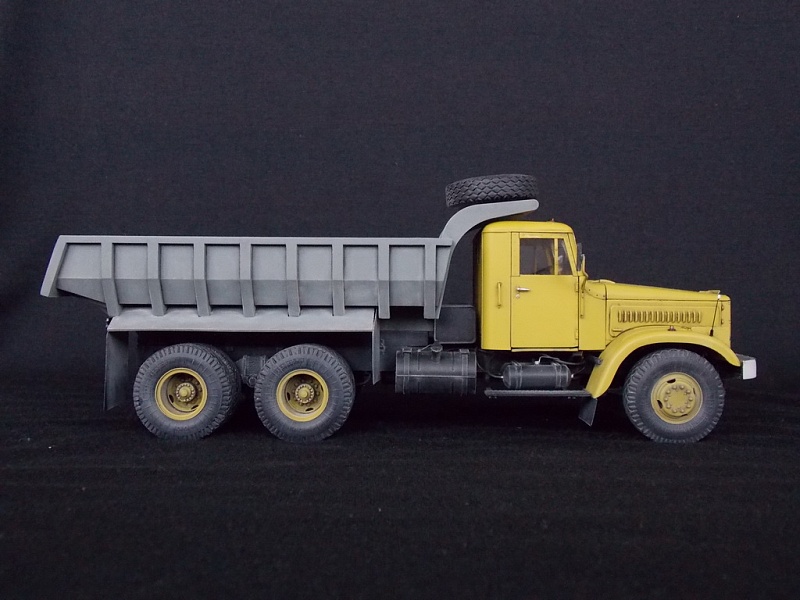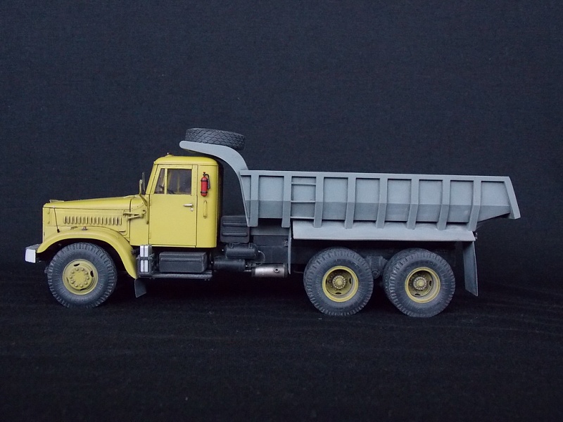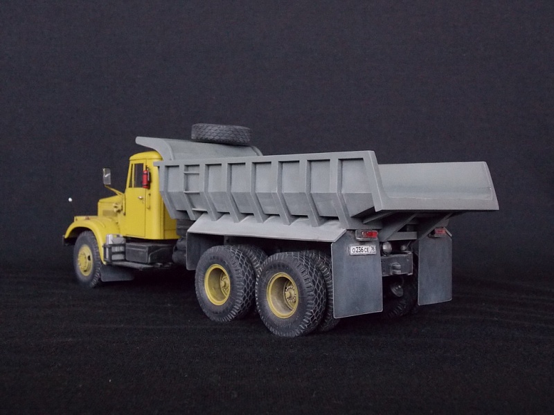 | Доброго времени Сегодня относительная новинка из мира растишек, 256й людоед. Покупка была спонтанная, увидел - захотел, тем более давно себя ничем не баловал. По набору, "вау" эффект при открытии коробочки, и тем более при освобождении всего и вся от зарослей поддержек, до "нуктотакстроитс@ка", при складывании этого в единый пазл. Так вот, изначально кеповцы выпустили тягач, а потом уж решили сделать совок, типа оно же всё одинаковое. Поэтому пришлось выдумывать и кроить. Выдумал кронштейны крепления рамы кузова к раме машины. Переделал выхлопную систему. Не стал ставить второй бак, фото совков с двумя баками попадаются одно из превеликого множества. Как говорится, что мешало посмотреть?! Под бампер сделал проставки, чтоб он занял своё место как положено. Подточил боковые крышки капота, чтоб сам капот стал вровень с передней панелью кабины, на которой перерезал шовчик, который должен быть одной линией с нижней кромкой капота. Чтобы деталь соединить с другой деталью, типа, колесо - ось, извольте дырочку расширить, ибо не лезет. Касается всех таких соединений. Стёкла даны плёнкой, ладно, не привыкать, хорошо, что даны трафареты на самоклейке. Плохо - самоклейка отвратного качества, снимается лохмотьями и оставляет следы клея на плёнке, давно такой пакости не видел, где они её взяли...Ну, всякие трубочки - шланчики, усики, куда ж без них, это понятно. Перенёс кронштейны задних фонарей с рамы на кузов, заодно приделал фару заднего хода. Механизацию кузова, а она действительно работает, и неплохо, если, опять же, рассверлить цилиндры гидравлики, принёс в жертву брызговикам. Зато не страшно брать машинку в руки. Тут извините. Номера взял от авдэшного зила, брызговики из дошипластика Вот как-то так. Всем приятного |