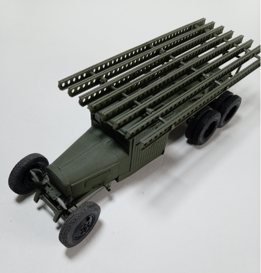 Судя по конструкции, подъема направляющей нет в конструктиве, но у оригинала есть зазор над кабиной для стрельбы нижними ракетами. Модель такого не позволяет.