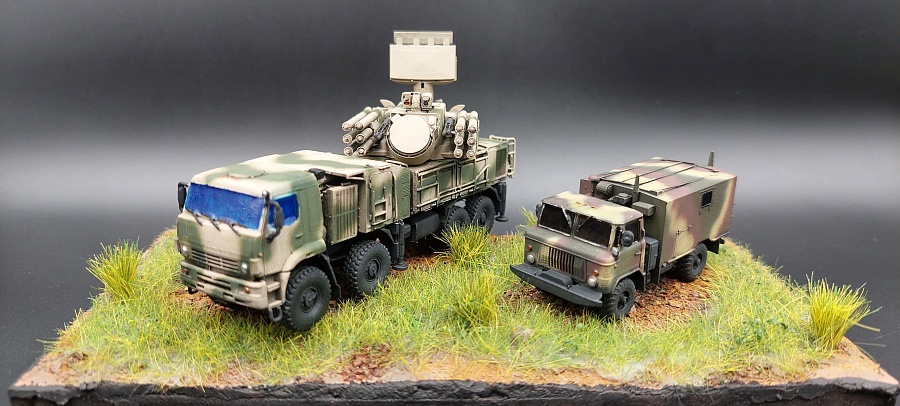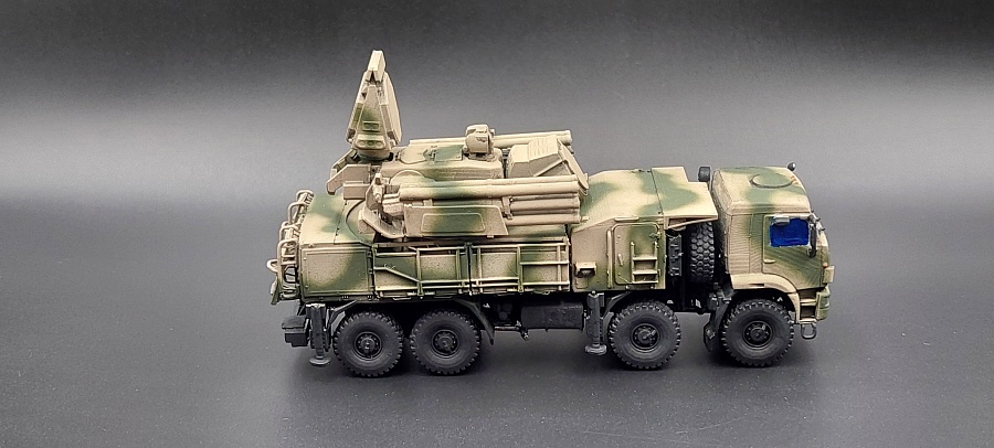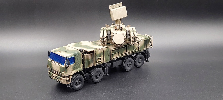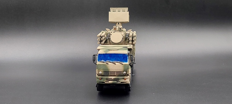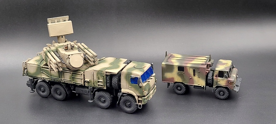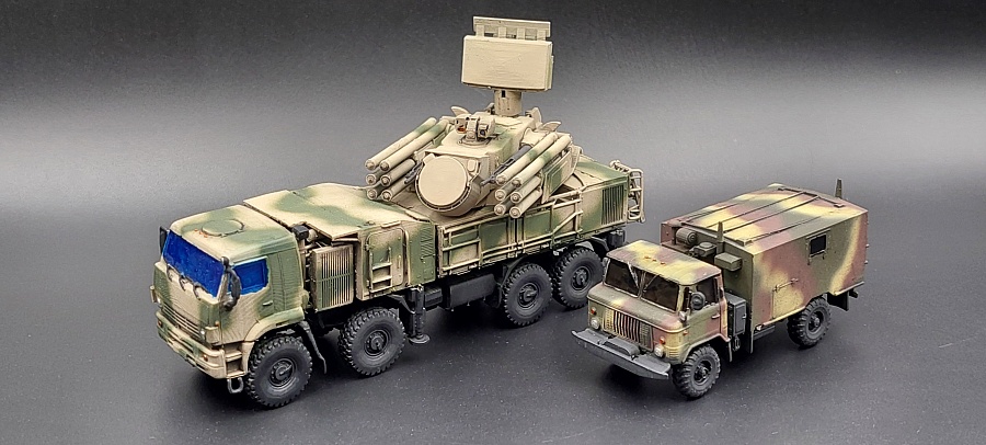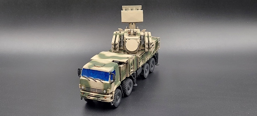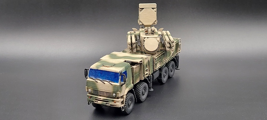 Доброго времени суток.Представляю Вашему вниманию 3 д модель в 100 масштабе от фирмы ЕСТ « Панцирь С1 » Купленная на Озон , причём данная модель изначально шла с двумя антенами , показывая разные модификации . Данная модель выполнена очень качественно с прекрасной детализацией для своего масштаба . Мною были убраны поддержки и выбран камуфляж в сирийском варианте . Красилась модель красками тамия , химия использовалась тамия , финишное покрытие лак от валехо . Зеркала и фары красились зеркальным маркером с жидким хромом . Имитация стекол сделана прозрачным лаком от тамия . Предпоследнее фото сравнение с ГАЗ 66 КШМ в том же масштабе . Приятного просмотра .