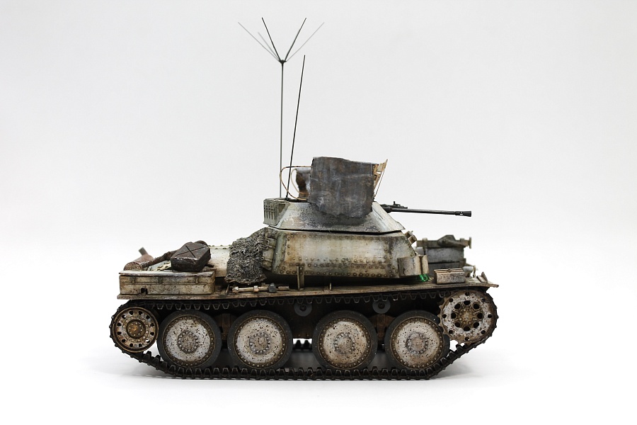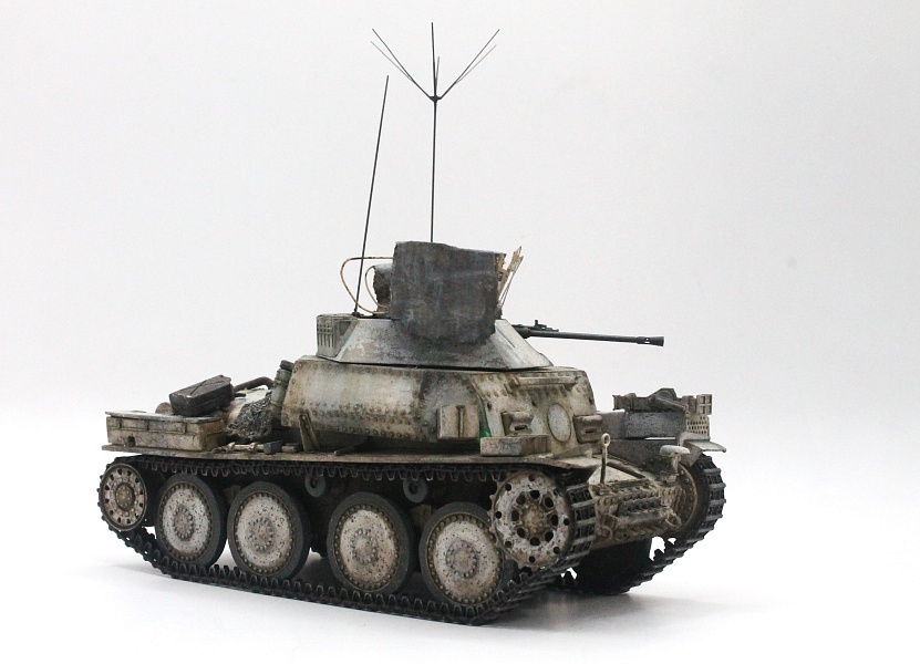 Всем доброго времени суток! Как то раз я прогуливался в Детском мире по юности, и наткнулся на весьма любопытный аппарат, на коробке было указано "Восточный экспресс". Не долго думая, я схватил коробочку и побежал на кассу) Модель была собрана, естественно, в силу отсутствия опыта, сборка прошла не совсем гладко) Покрасил кистью и поставил на полку.... Шли годы, очки опыта росли, а вместе с ним и терпение, и вот решил я отдать дань памяти своему хобби и заиметь еще один абсолютно такой же танчик. Арк он и есть Арк со всеми прелестями. Разумеется, не триумфальный Драгон или Тамия, и даже не простенькая Звезда. Но как оказалось, при наличии сноровки, желания и опыта собрать более-менее похожую модель вполне себе возможно. По матчасти, конечно есть пробелы, но цели воспроизвести 100% точность перед собой не ставил. Скорее, хотел потренироваться в запилах, да и нравится мне ковыряться с дровами от АРКа и его производных) По доработкам список небольшой. Остались у меня в запасниках детальки от Драгоновских pz38, пустил в бой. Сетка на башню из "урезанного" набора от Вояджер + самодел. В принципе, гусеницы из набора терпимого качества, но сама звезда косячная. Принял решение заменить на траки из 3д печати + корректная звезда. МГ42 в башне от Драгона, ствол 20мм орудия - RB. Ящик с домкратом от Драгон, глушитель от Москита. Окраска нетленной Ганзой, вспомогательная химия маслом.