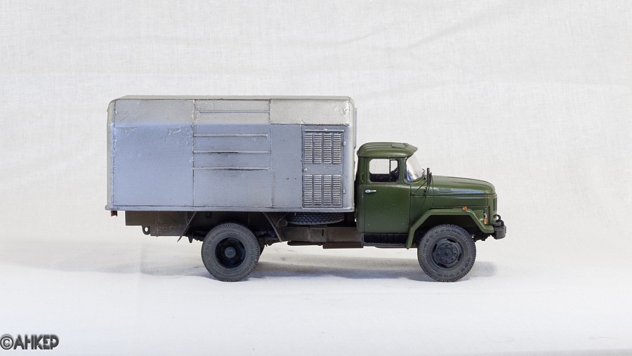 Как и всегда - замена ручек, поворотная балка, колеса,оптика. Немного доработал фургон по фото прототипа Дворники АЕМ