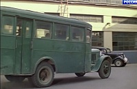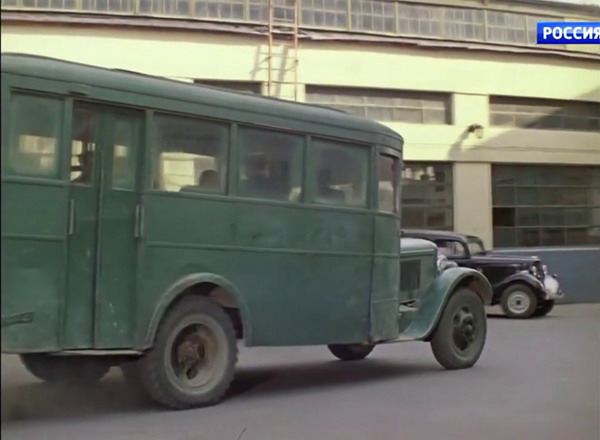 Да, у Мосфильма был автобус на базе Зис-5, выглядит так же но короче. Были автобусы, которые делали на базе именно грузовика и периодически на кадрах видно 'родные' синий низ и светлый верх(на открытых дверях по граням)