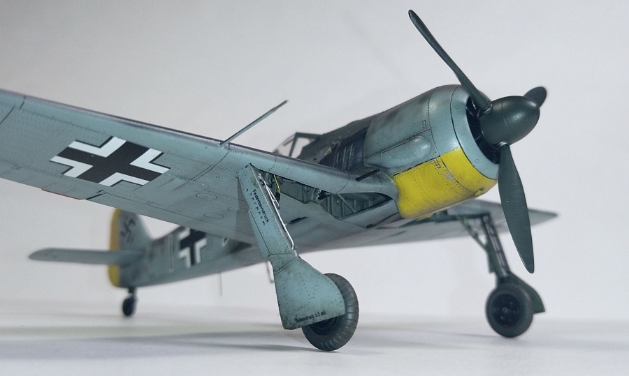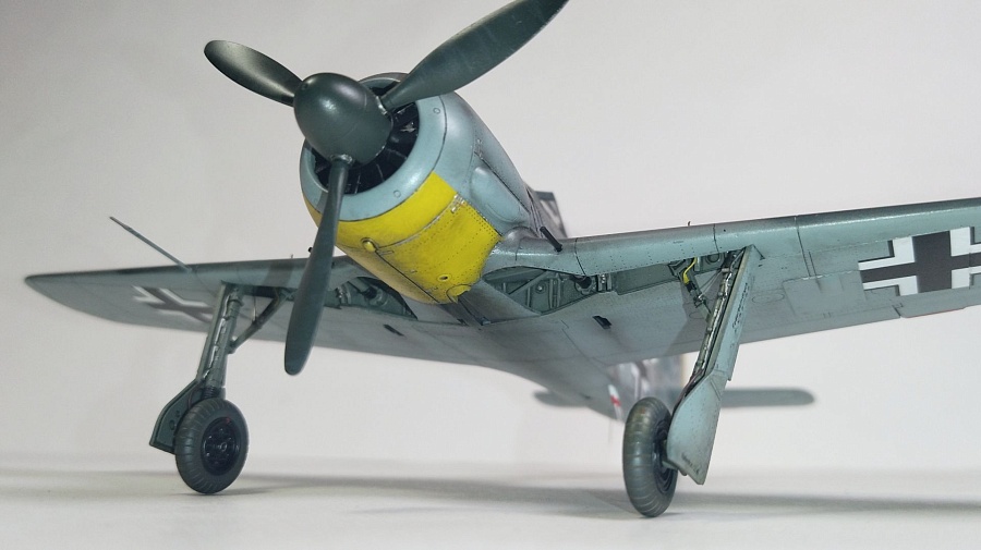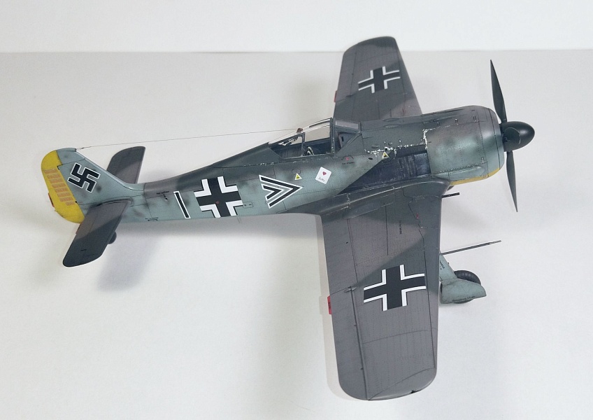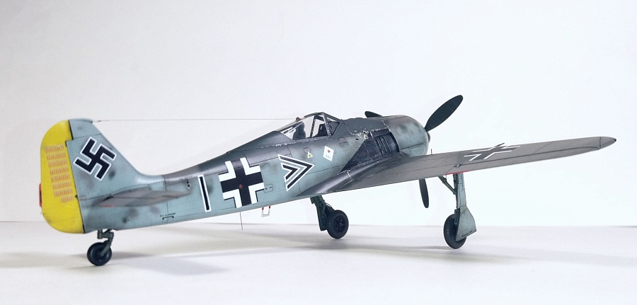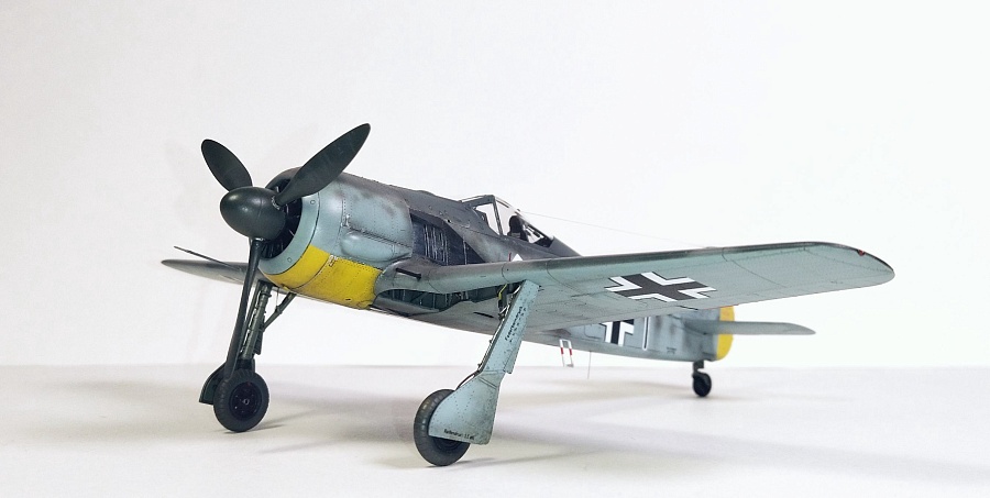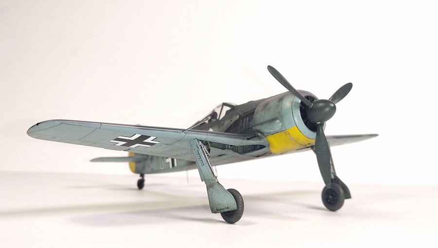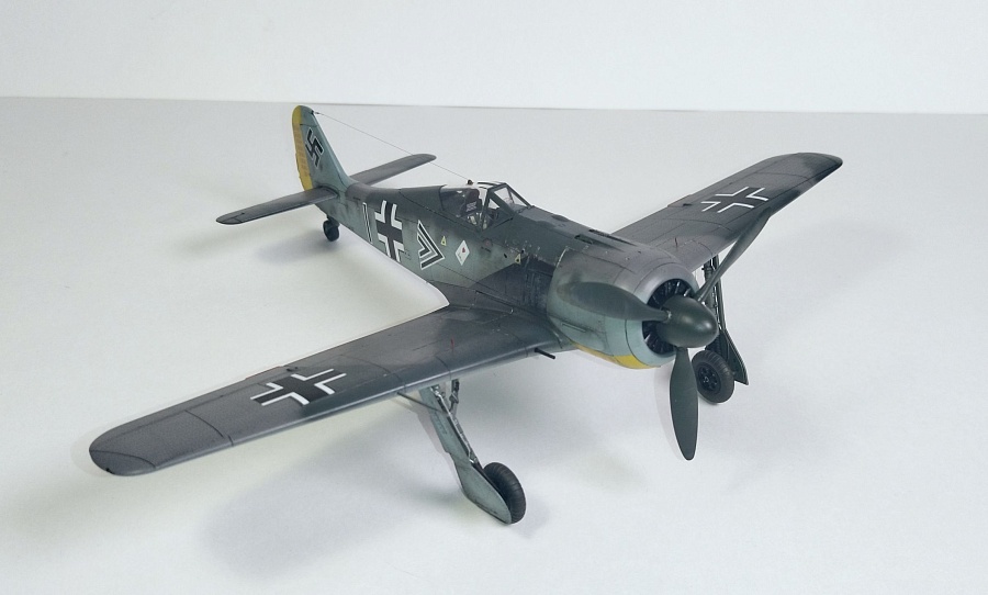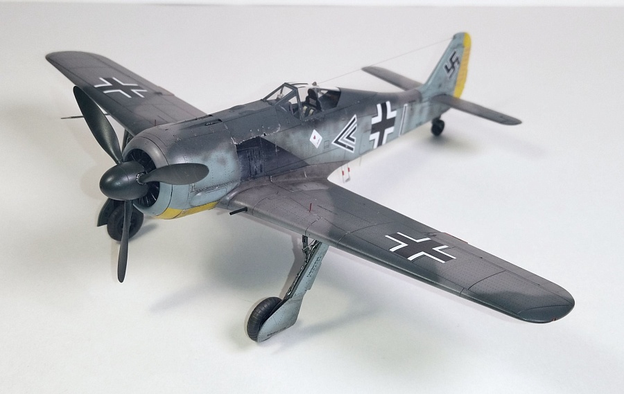 | Приветствую. Давно лежала у меня эта коробка. И давно хотел нормальную Фоку собрать. Волею случая такая возможность образовалась. Правда в итоге модель будет не у меня пылиться. Что печально. Но сам процесс понравился. Заказчику подсунули барыги старую эдиковскую Фоку. Сравнив с этой, понял, что на ту рука не поднимается))) Небо и земля. К тому же у меня вариант ProfiPack. А там пустышка. Только декали. Пришлось задавить жабу и предложить собрать нормальную модель. Что и было проделано. Как написал выше, процесс сборки весьма приятен. Все стыкуется как надо, швы где надо, куча вариантов исполнения (правда половина не нужна, так как на поздние версии). 4 варианта декалей, на Западный и Восточные фронты. Я делал самолет Йозефа Приллера из JG26, на тот момент базировавшийся в Бельгии, 1942-ой год. Тут немного озадачился, ибо описывать процесс нет смысла. Все по инструкции. Главное аккуратно и не спеша. От себя добавил проводку на шасси, тросики уборки шасси и фонаря кабины, антенну. Окраска так же по инструкции, вроде все соответствует. Попачкал немного маслом, сделал чуток сколов. Не сильно. Машина командирская, ухаживали тщательно, летали с бетонки. Так что может даже и чересчур запачкал. Будем считать, что после вылета. Краска Ганза и Тамия. Лак финишный полуматовый. Декали традиционно модные, со съёмным лаковым слоем. Вот единственное проблемное место. Так как лак частенько снимается вместе с краской декали. Несмотря на тщательную приварку. Причем на тонких местах, где белый кант. Кое где пришлось подкрашивать кисточкой. |