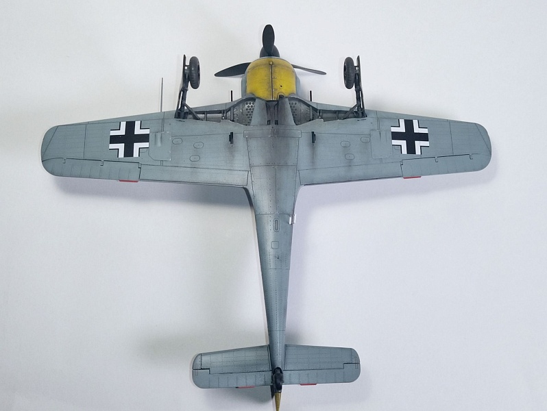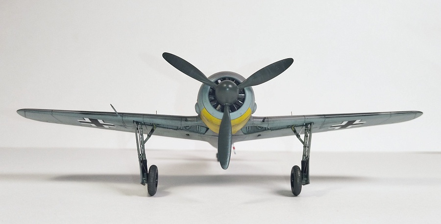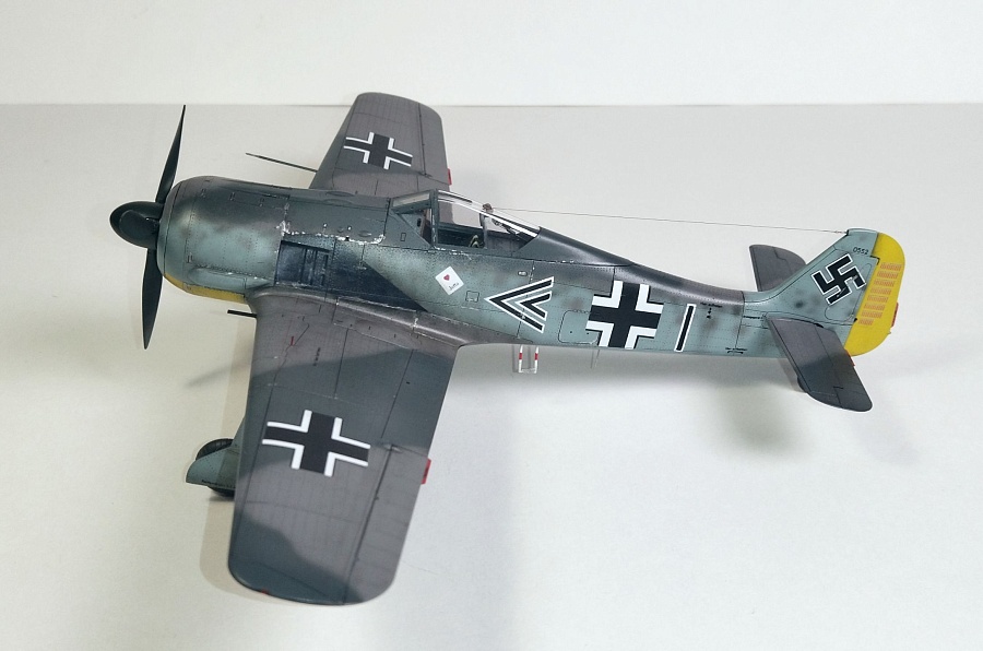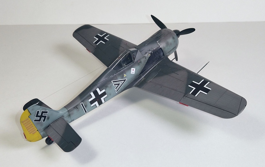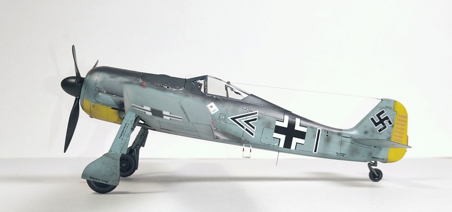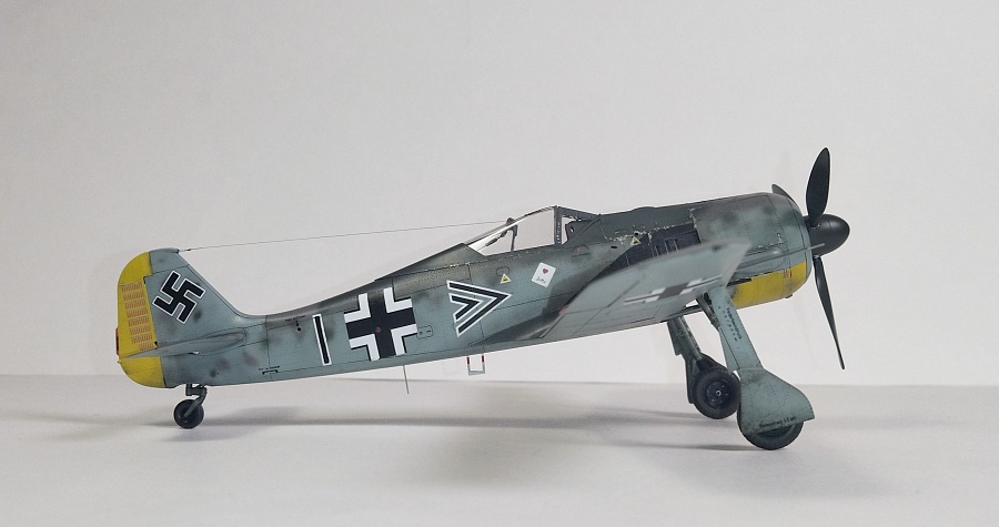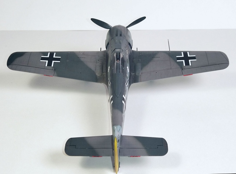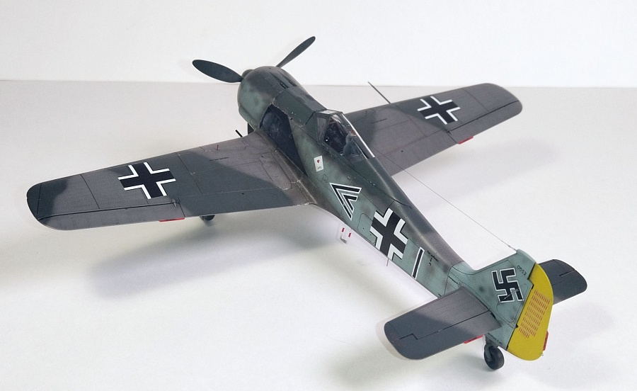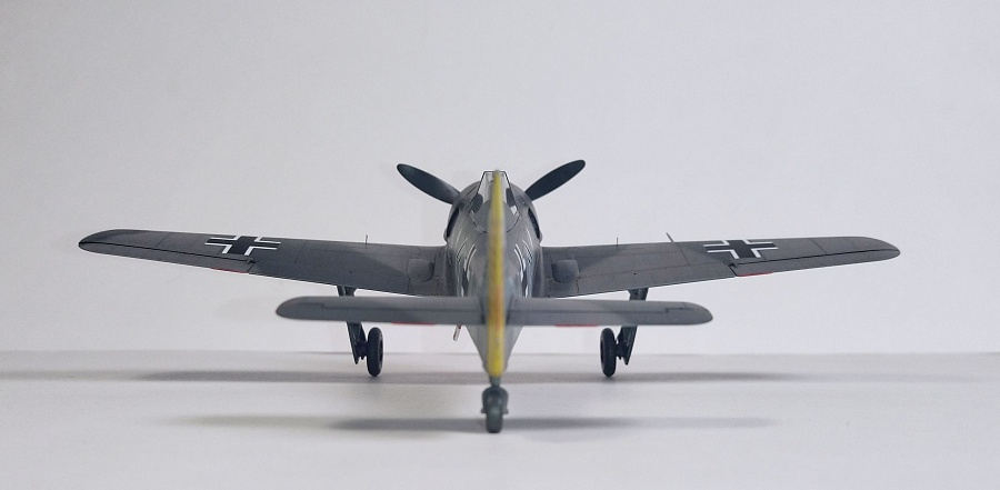 | Приветствую. Давно лежала у меня эта коробка. И давно хотел нормальную Фоку собрать. Волею случая такая возможность образовалась. Правда в итоге модель будет не у меня пылиться. Что печально. Но сам процесс понравился. Заказчику подсунули барыги старую эдиковскую Фоку. Сравнив с этой, понял, что на ту рука не поднимается))) Небо и земля. К тому же у меня вариант ProfiPack. А там пустышка. Только декали. Пришлось задавить жабу и предложить собрать нормальную модель. Что и было проделано. Как написал выше, процесс сборки весьма приятен. Все стыкуется как надо, швы где надо, куча вариантов исполнения (правда половина не нужна, так как на поздние версии). 4 варианта декалей, на Западный и Восточные фронты. Я делал самолет Йозефа Приллера из JG26, на тот момент базировавшийся в Бельгии, 1942-ой год. Тут немного озадачился, ибо описывать процесс нет смысла. Все по инструкции. Главное аккуратно и не спеша. От себя добавил проводку на шасси, тросики уборки шасси и фонаря кабины, антенну. Окраска так же по инструкции, вроде все соответствует. Попачкал немного маслом, сделал чуток сколов. Не сильно. Машина командирская, ухаживали тщательно, летали с бетонки. Так что может даже и чересчур запачкал. Будем считать, что после вылета. Краска Ганза и Тамия. Лак финишный полуматовый. Декали традиционно модные, со съёмным лаковым слоем. Вот единственное проблемное место. Так как лак частенько снимается вместе с краской декали. Несмотря на тщательную приварку. Причем на тонких местах, где белый кант. Кое где пришлось подкрашивать кисточкой. |