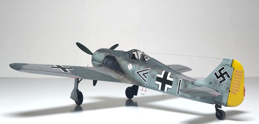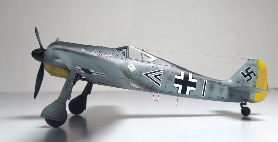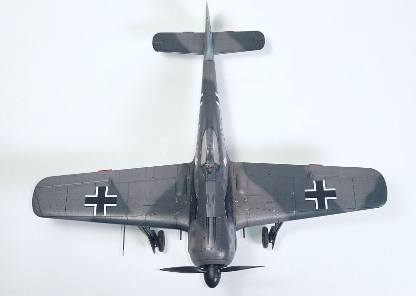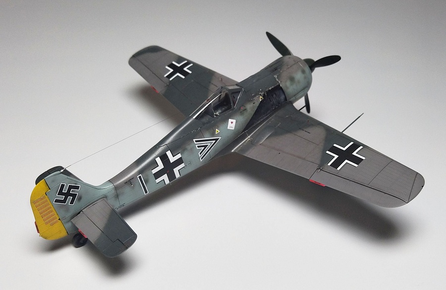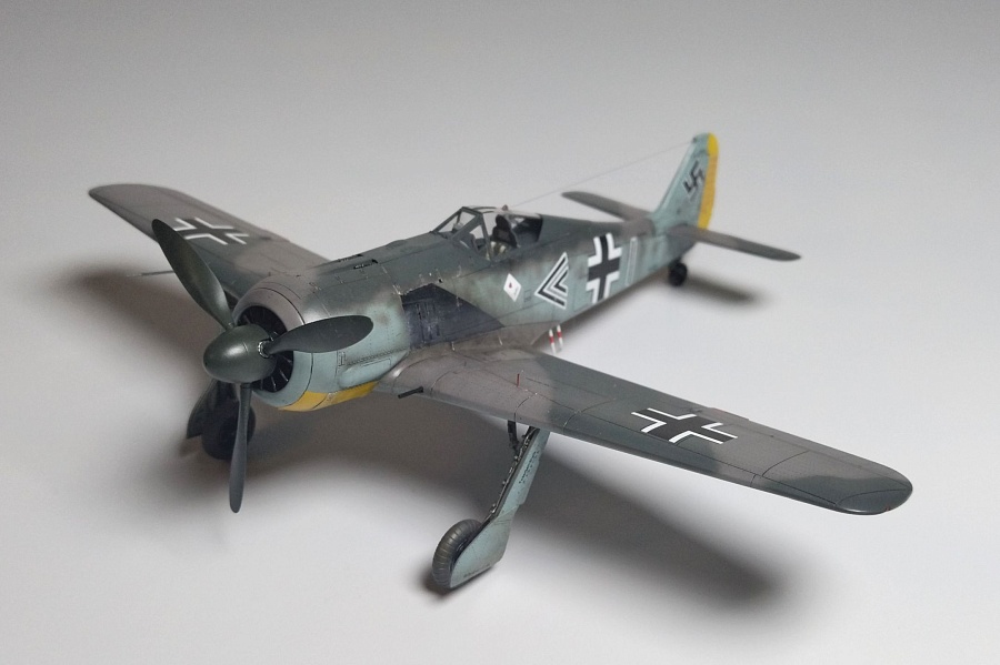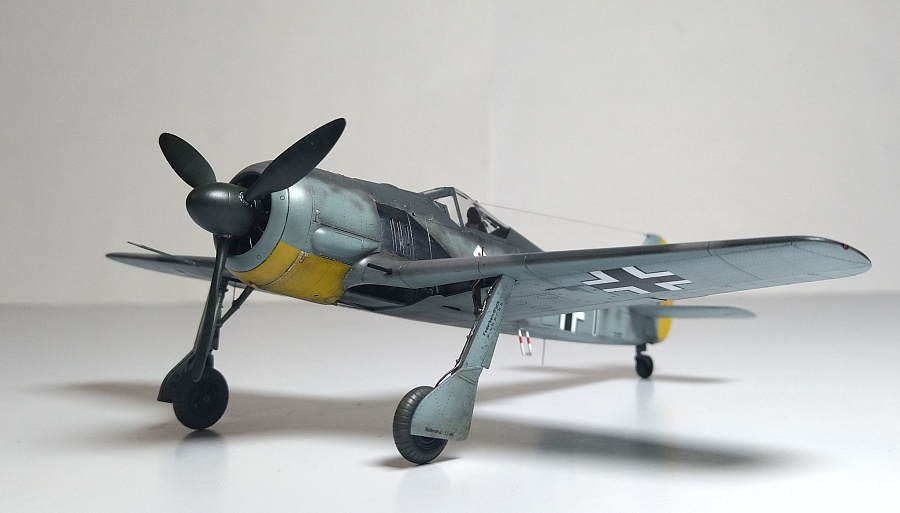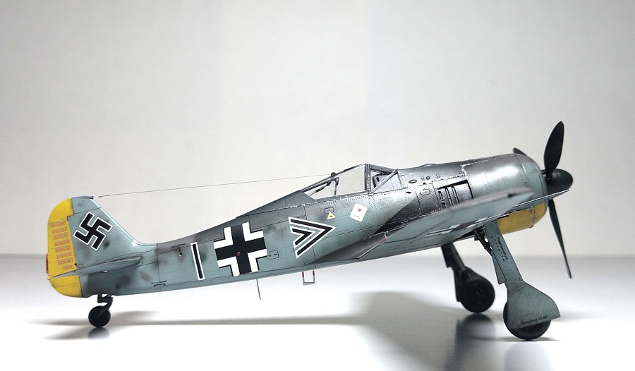 | Приветствую. Давно лежала у меня эта коробка. И давно хотел нормальную Фоку собрать. Волею случая такая возможность образовалась. Правда в итоге модель будет не у меня пылиться. Что печально. Но сам процесс понравился. Заказчику подсунули барыги старую эдиковскую Фоку. Сравнив с этой, понял, что на ту рука не поднимается))) Небо и земля. К тому же у меня вариант ProfiPack. А там пустышка. Только декали. Пришлось задавить жабу и предложить собрать нормальную модель. Что и было проделано. Как написал выше, процесс сборки весьма приятен. Все стыкуется как надо, швы где надо, куча вариантов исполнения (правда половина не нужна, так как на поздние версии). 4 варианта декалей, на Западный и Восточные фронты. Я делал самолет Йозефа Приллера из JG26, на тот момент базировавшийся в Бельгии, 1942-ой год. Тут немного озадачился, ибо описывать процесс нет смысла. Все по инструкции. Главное аккуратно и не спеша. От себя добавил проводку на шасси, тросики уборки шасси и фонаря кабины, антенну. Окраска так же по инструкции, вроде все соответствует. Попачкал немного маслом, сделал чуток сколов. Не сильно. Машина командирская, ухаживали тщательно, летали с бетонки. Так что может даже и чересчур запачкал. Будем считать, что после вылета. Краска Ганза и Тамия. Лак финишный полуматовый. Декали традиционно модные, со съёмным лаковым слоем. Вот единственное проблемное место. Так как лак частенько снимается вместе с краской декали. Несмотря на тщательную приварку. Причем на тонких местах, где белый кант. Кое где пришлось подкрашивать кисточкой. | |
