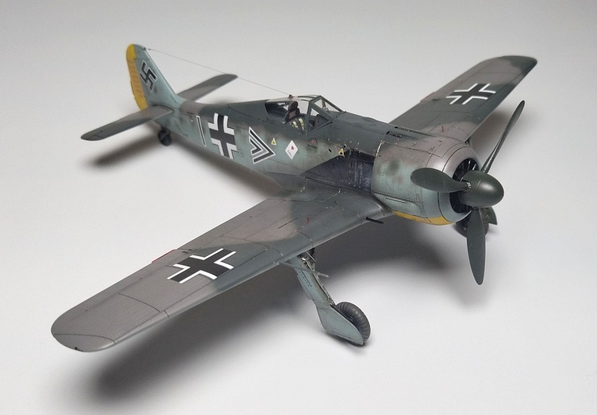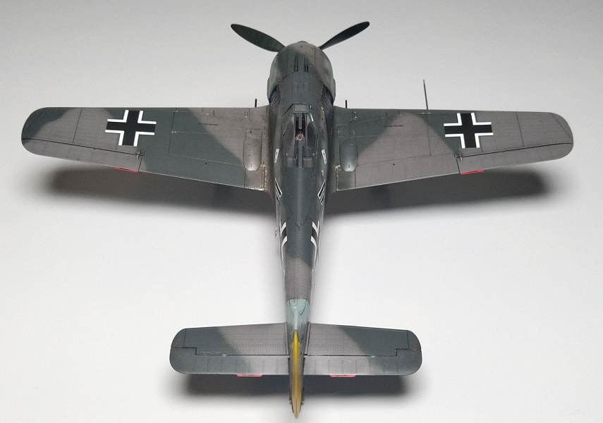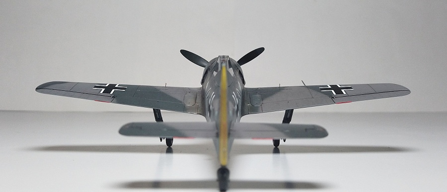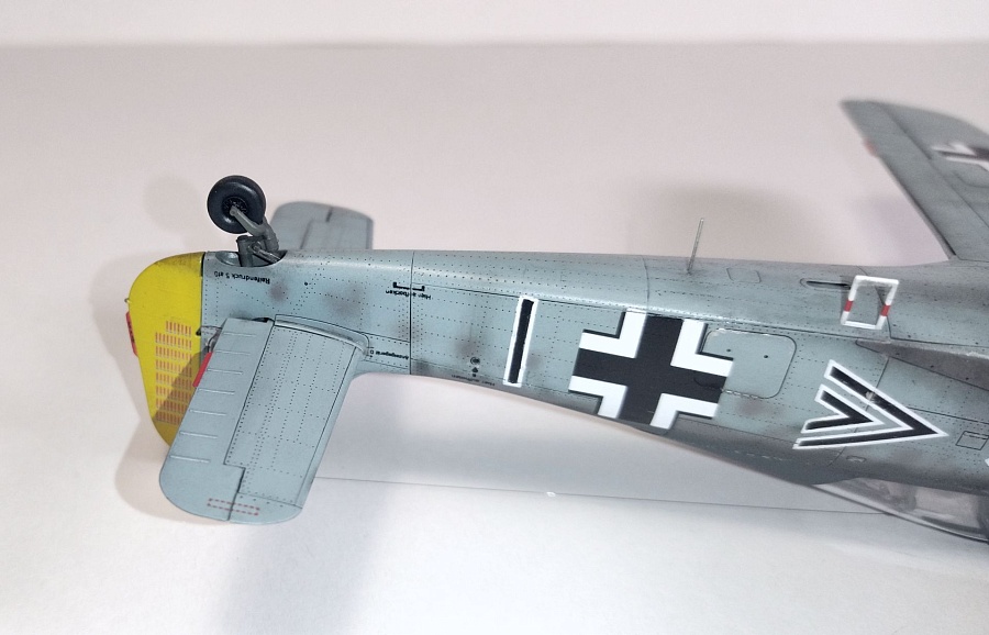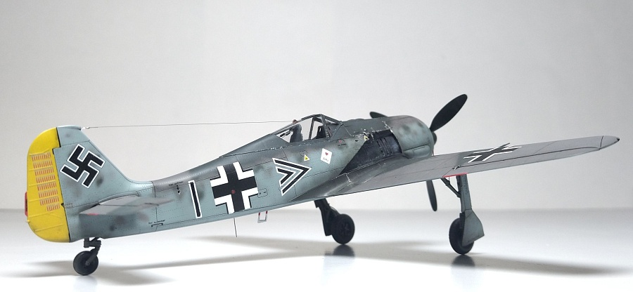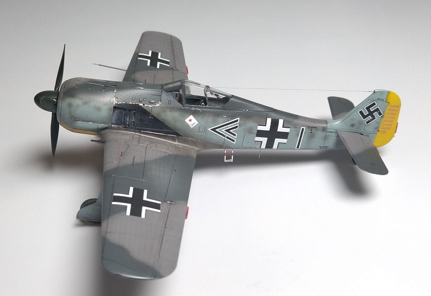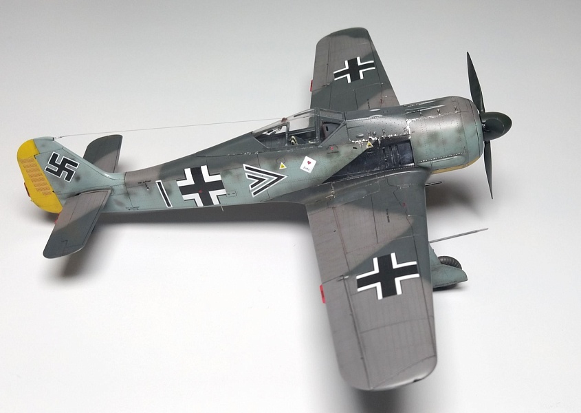 | Приветствую. Давно лежала у меня эта коробка. И давно хотел нормальную Фоку собрать. Волею случая такая возможность образовалась. Правда в итоге модель будет не у меня пылиться. Что печально. Но сам процесс понравился. Заказчику подсунули барыги старую эдиковскую Фоку. Сравнив с этой, понял, что на ту рука не поднимается))) Небо и земля. К тому же у меня вариант ProfiPack. А там пустышка. Только декали. Пришлось задавить жабу и предложить собрать нормальную модель. Что и было проделано. Как написал выше, процесс сборки весьма приятен. Все стыкуется как надо, швы где надо, куча вариантов исполнения (правда половина не нужна, так как на поздние версии). 4 варианта декалей, на Западный и Восточные фронты. Я делал самолет Йозефа Приллера из JG26, на тот момент базировавшийся в Бельгии, 1942-ой год. Тут немного озадачился, ибо описывать процесс нет смысла. Все по инструкции. Главное аккуратно и не спеша. От себя добавил проводку на шасси, тросики уборки шасси и фонаря кабины, антенну. Окраска так же по инструкции, вроде все соответствует. Попачкал немного маслом, сделал чуток сколов. Не сильно. Машина командирская, ухаживали тщательно, летали с бетонки. Так что может даже и чересчур запачкал. Будем считать, что после вылета. Краска Ганза и Тамия. Лак финишный полуматовый. Декали традиционно модные, со съёмным лаковым слоем. Вот единственное проблемное место. Так как лак частенько снимается вместе с краской декали. Несмотря на тщательную приварку. Причем на тонких местах, где белый кант. Кое где пришлось подкрашивать кисточкой. | |