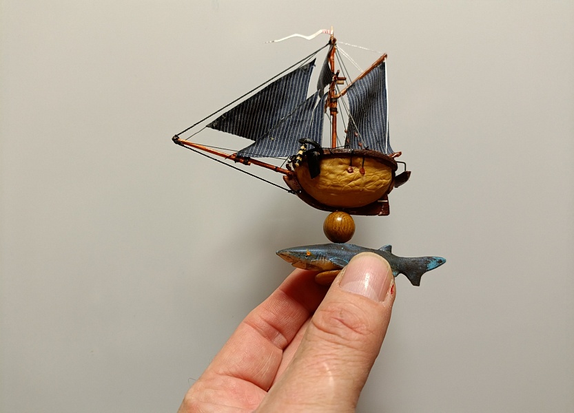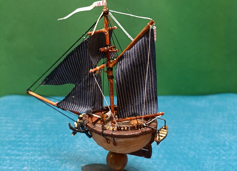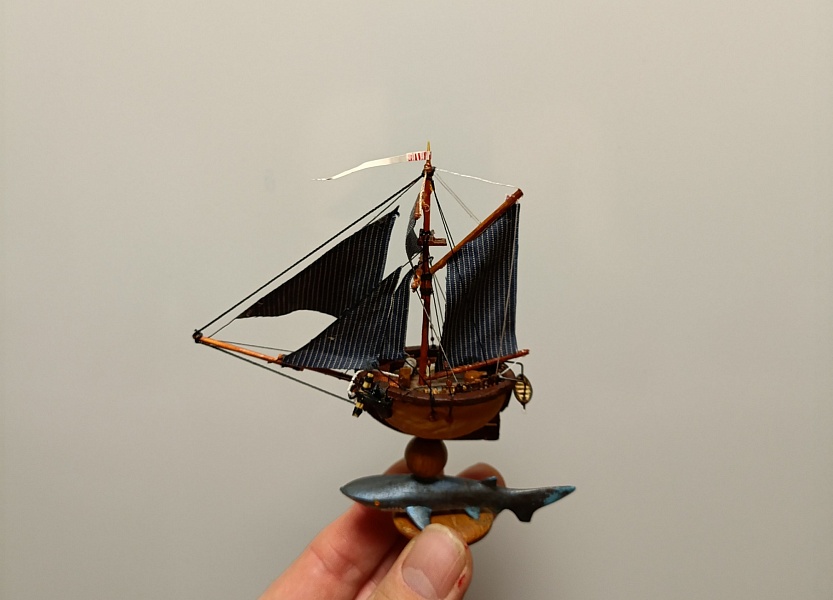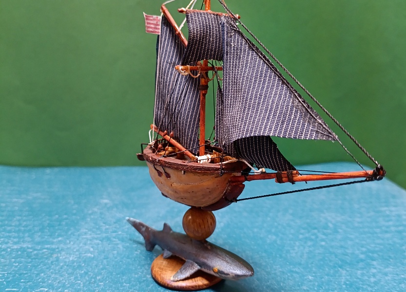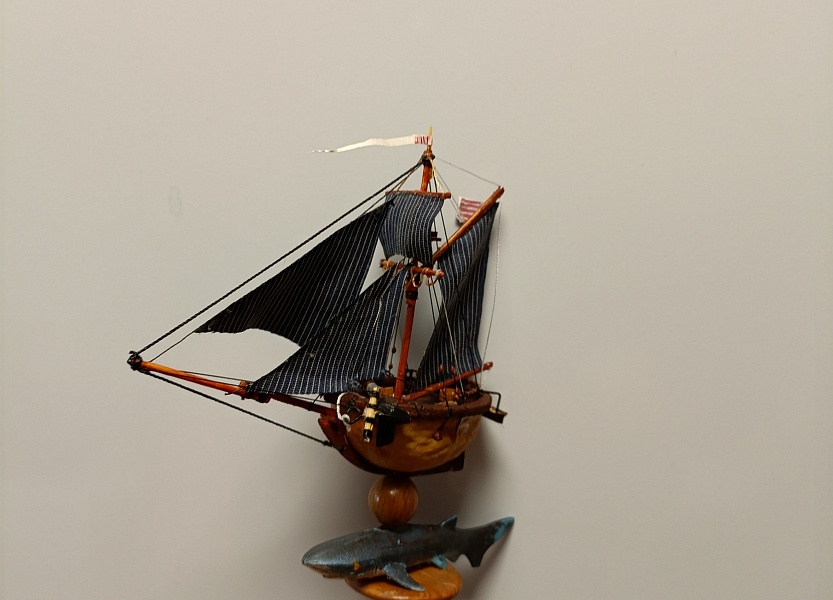 The walnut fleet Шлюп " Акулий зуб" Просто шлюп Ост индийской торговой компании.Орех грецкий, бамбук, можжевельник, зубочистки, шпон. Прошу прощения, после обрезки фото. они вышли " куцые" не влезли мачты. Получится пересниму. А принципе можно судить по крайним фото. Те , что с рукой. Пока из всего орехового флота это самый высокий кораблик. Но пока в серванте почти весь " флот" помещается. (Кроме тех что раздарил) .Чему не сказано рада жена