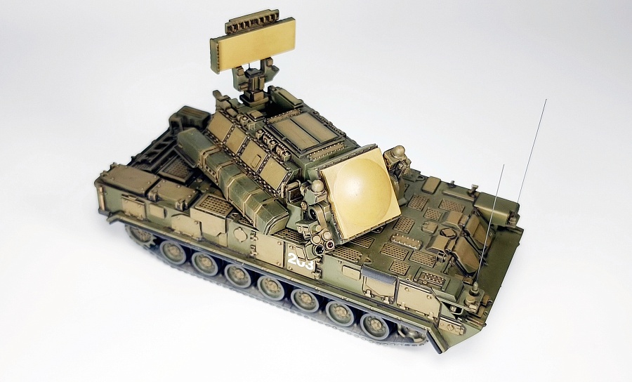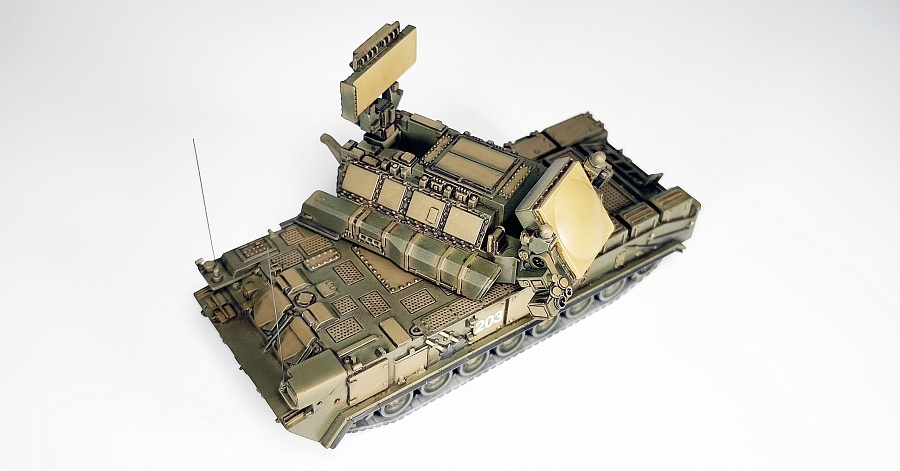 Приветствую коллеги! Зенитно ракетный комплекс ТОР М2 Масштаб: 1/72 Модель фирмы: 4D Puzzle Попался вот такой быстро сбор на просторах интернета, как заявляет производитель что это "тор м2" внешне похож на китайский вариант, есть сходства но при ближайшем осмотре много неточностей и упрощений, по большей части это игрушка и рассматривать её как серьезную модель не стоит, даже если брать как базу для запила то пелить нужно будет наверное все, проще будет сделать его с ноля. Особо заморачиваться в сборке не стал так как смысла нет, хотелось приблизить его больше к российскому варианту, накидал деталировки, что то по фотографиям из сети что то из головы, получился собирательный образ с закосом под ТОР М2. Ввиду упрощений со стороны производителя получилась отвратительная ходовая с осутвием внятных траков и ведущей звёздочки. Но не смотря на все выше сказанное работа на мой взгляд получилась объёмная. Назначение многих узлов я не знаю по этому не смогу описать то что доработал в подробностях, кому будет интересно результат до покраски приложу фото в комментариях. Немного о проделанной работе: Срезал бортовые экраны и установил вместо них брызговики, установил брызговики сзади, установил фары, габаритные огни, антенны, букс. крюки сзади, установил камеры видеонаблюдения (добавил защиту на переднюю камеру), доработал триплексы, немного доработал сам корпус, а также установку с рлс. Пожалуй это все что вспомнил. Приятного просмотра...
