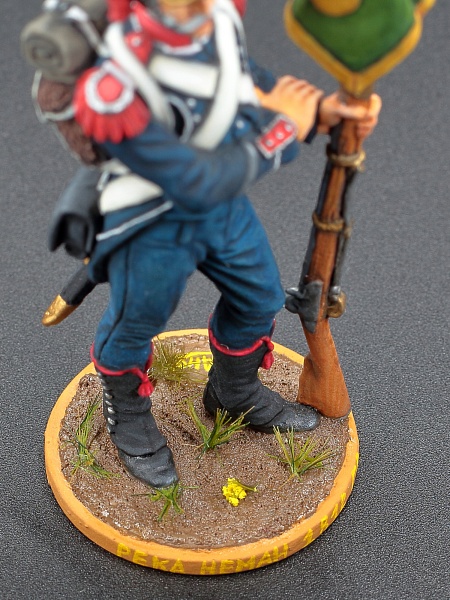 Так и этот сержант карабинеров 8-го лёгкого полка с ротным фаньоном подкупил нас своей проработанностью и вниманию к мельчайшим деталям. А Данька - мой сын - погрузился в роспись по самые уши, после того как побывал на мастер-классе Московского Масштаба 2025 у Димы Сливкова. Дима за какой то час чертовский интересно и талантливо преподал основы росписи, используемые инструменты, приемы и техники.
