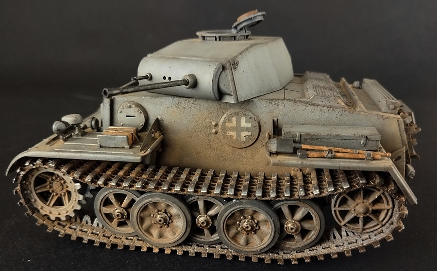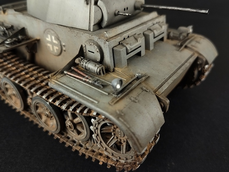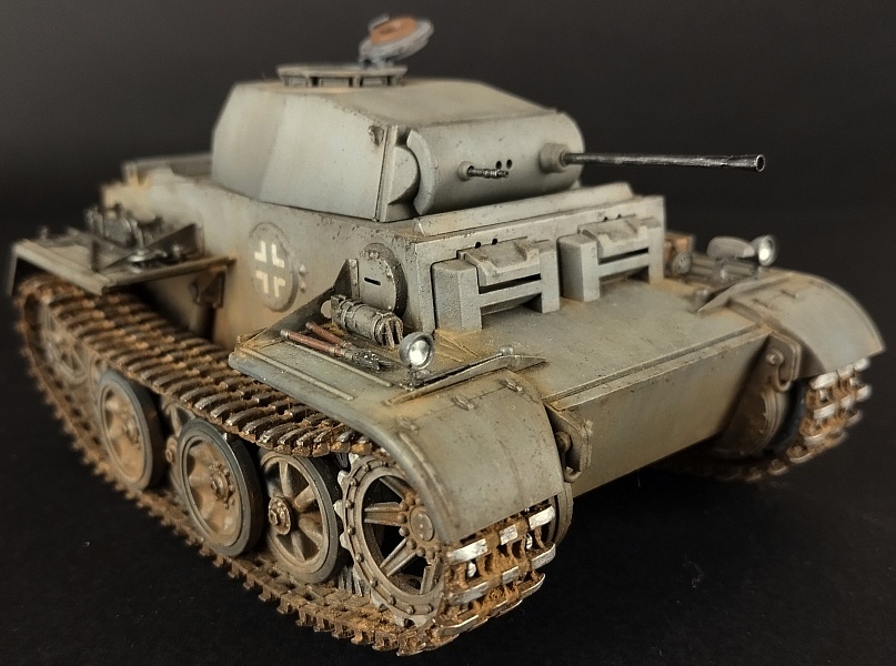 Всем доброго времени суток.Модель немецкого танка German Pzkpfw. 2 Ausf. J в масштабе 1:35, от производителя Hobby Boss.Модель прекрасно собирается, стыковка отличная. В наборе небольшая платка фототравления. От себя добавил пару креплений шанца от Микродизайн , отражатели и стекла фар от Эльф.Окрас , использовал набор от Ammo MiG для немецкого танкового серого. Фильтр от АК, голубой для танкового серого.Тонировка масло от Валдер, пигменты Зип маркет. На мой взгляд окрас получился слишком светлым, хотя и использовал темные тона при тонировке.Исторической привязки нет. На владение знанием матчасти не претендую.С уважением.