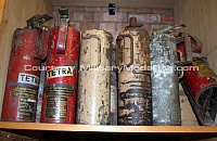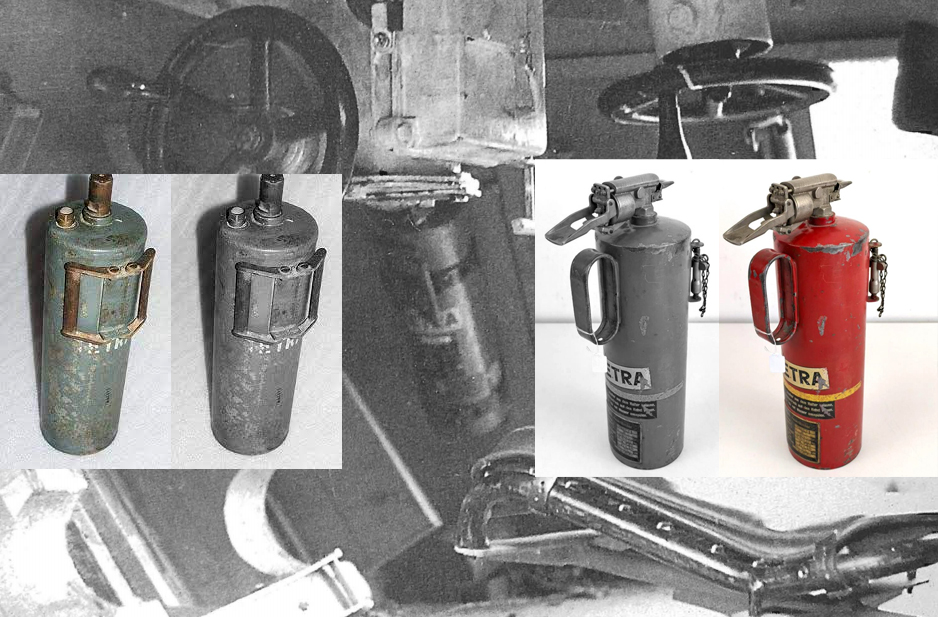 Красные огнетушители TETRA использовались, скорее всего в гражданских целях и помещениях, с классном возгорания А. У них и крепление совершенно иное, и расположение этикетки, и конструкция включения немного отличается. Иногда утвержадют, что красные использовались в самолетах. В любом случае, с приваренной таким образом ручкой красный огнетушитель нельзя установить на штатное крепление ни на броне, ни внутри. А все эти бовингтонские и богвардские фантазии с красными баллонами это все колхозная реставрация.