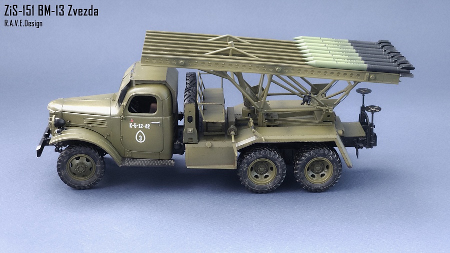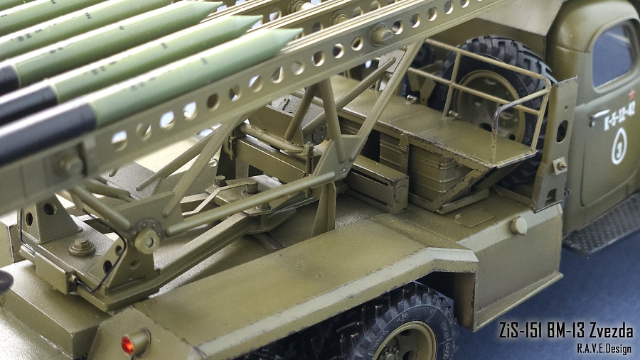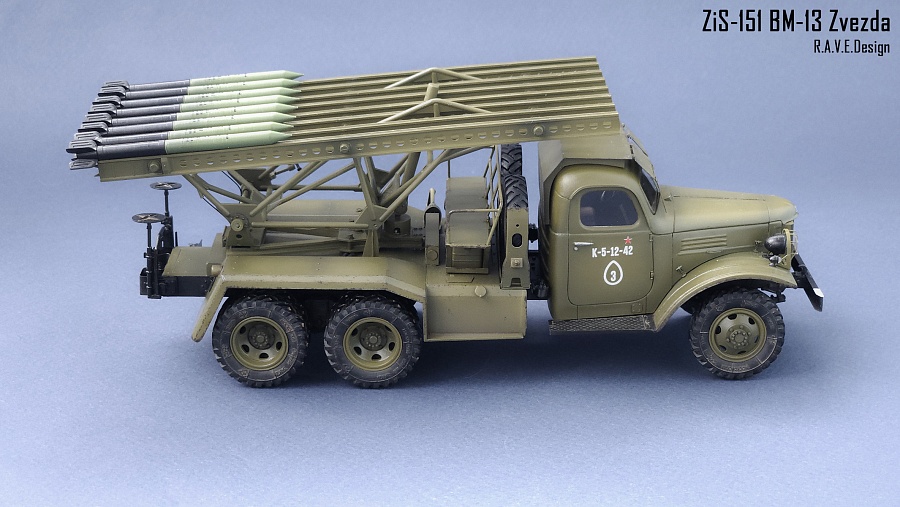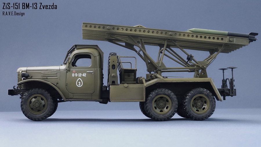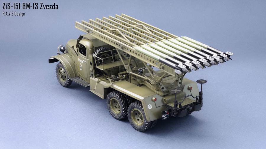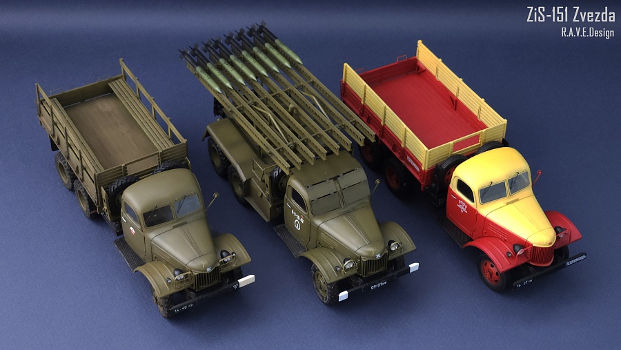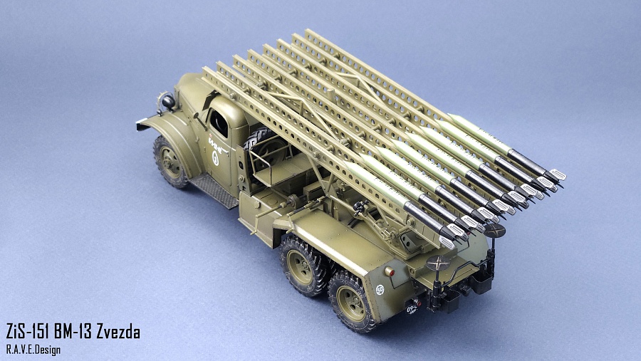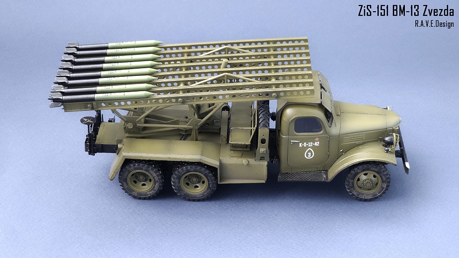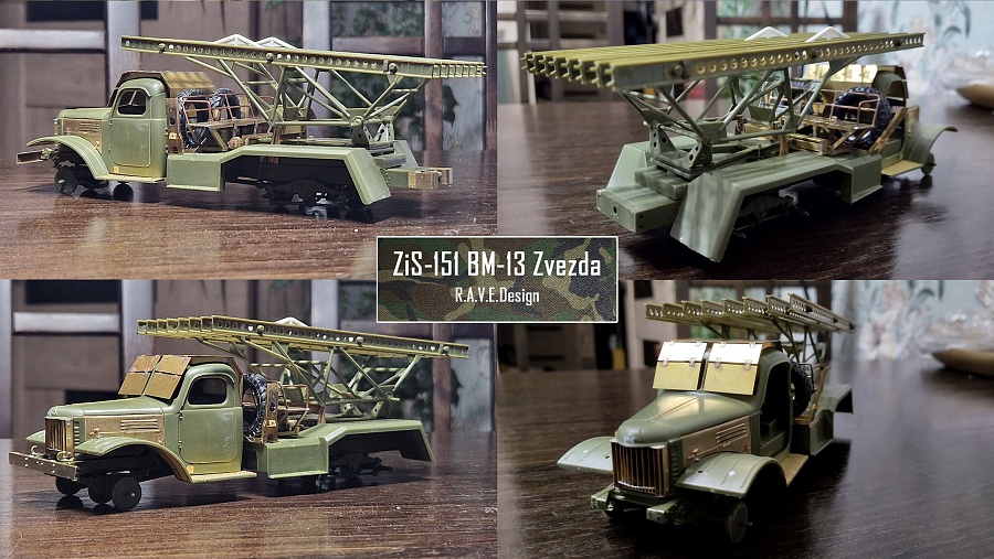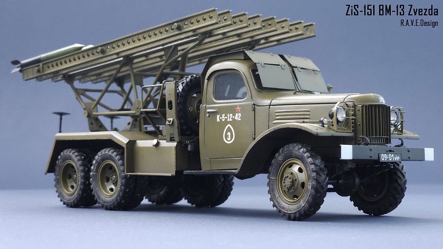 | ЗиС-151 БМ-13 от фирмы Звезда/Italery. Это один из трёх собранных звездовских ЗиСов, посвящённых рождению нашего сына Захарки. Однажды я задался целью собрать звездовские Захары максимально качественно и купил три набора. Остальные два - бортовые, они тоже собраны и будут выложены позже. Собиралась модель очень непросто, так как пресс-формы для неё были изготовлены аж в 1976 году по кривым польским чертежам, которые легко можно найти в интернете. Тем не менее мы постарались сделать из этих дров максимально привлекательную и детализированную модель культового реактивного миномёта, хоть и послевоенного выпуска. При сборке модели в первую очередь было использовано фототравление от Микродизайна для ЗиС-151 и ЗиЛ-157 (решётки фар), а так же по собственным эскизам компания Микродизайн изготовила нам скамеечку , за что огромная благодарность Максиму Алексашину и его команде. Пусковая рампа была позаимствована с новой модели от Звезды - СТЗ-5 БМ-13, за что спасибо компании Звезда, любезно предоставившей два литника с рампой. Колёса -3д печать от Hobby Planet, с ними пришлось помучиться, так как дешёвая смола дала усадку и покрышки тупо не налезли на диски, из-за чего каждую покрышку пришлось вышкуривать под диаметр диска, но по сравнению с тихим ужасом из смолы от этого же производителя, 3д печать выглядит гораздо лучше. Ракеты М-20 тоже 3д печать от фирмы Моя модель. Фары, поворотники, задние габариты, тормозные камеры, ящики ЗИП и ресиверы - собственные дополнения, смоделированные в 3DS MAXи напечатанные на нашем принтере. Остекление кабины - расслоённый DVD. Сверху были добавлены дуги, изготовленные из пластиковых стержней и листового пластика от ZIP-Maket. Декали, как всегда рисовали сами и печатали в Народной декали. Грунтовалась модель нитро грунтом от Pacific88, окрашивалась спиртовым акрилом от Ганзы H512, покрышки и оперение снарядов - водный акрил Black от Pacific88. Рефлекторы фар окрашивались маркером Хром Jim Scale. Задние габариты - цветные спиртовые лаки от Тамии. Лёгкий чиппинг - краска от AMMO MIG, кажется так и называется - чиппинг и совсем немножко пигментов от ZIP-Maket. Приятного просмотра. |
