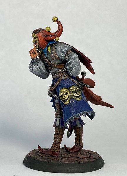 для исторички хрень собачья, для фэнтези - тускло. В любом случае, покрашено тухло и неинтересно, к тому же и неаккуратно, маски так и вовсе беда - в итоге жутковатая фантасмагоричная идея экспрессивного шута, манерно играющего смертью (или со смертью, кому как больше нравится) - убита в зародыше. Посмотрите в интернете разные работы по росписи вархаммерских (40 000, конечно, в WHFB такого нет) арлекин эльдар. Не их кораблей и байков, а самих представителей, так сказать. Такие типажи интересны, когда и жутковато и впечатляет и ярко, а тут промах по всем статьям: жутковато лишь от того, откуда могут расти руки у автора работы, но это немного не та жуть.