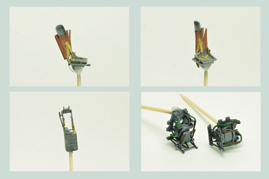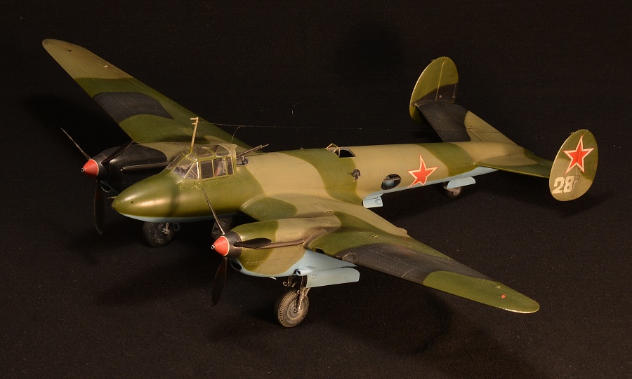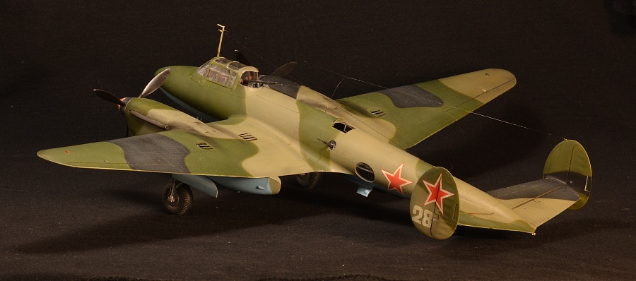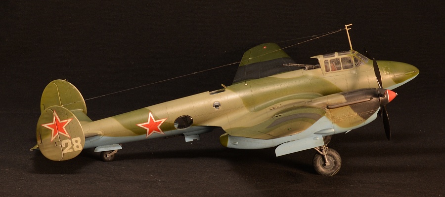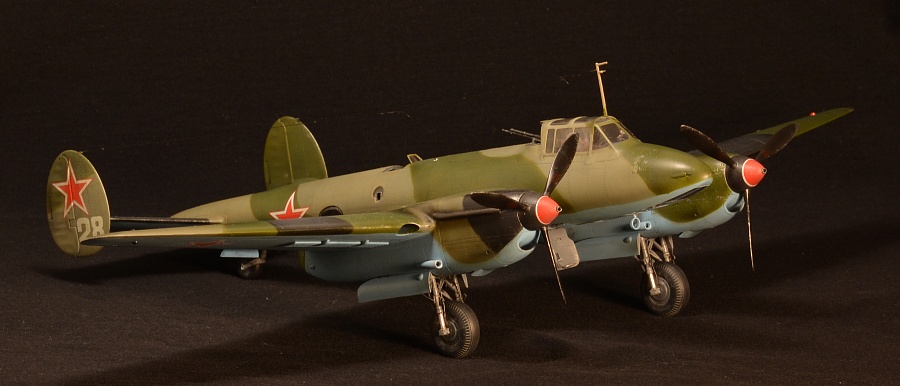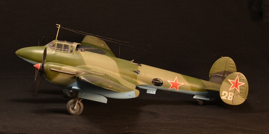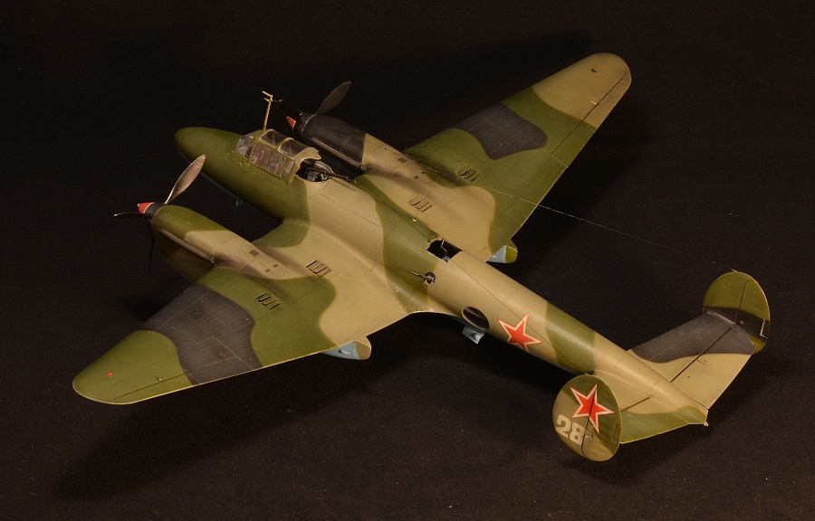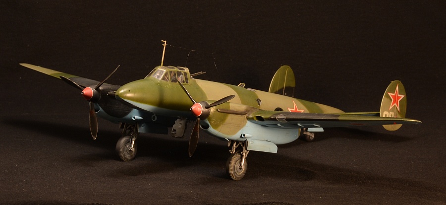 | Эта коробочка Пе-2 лежала у меня довольно давно, все не мог к ней подступиться. Потихоньку закупался допами: - 3 набора фототравления Микродизайн - 3D декаль и фонарь Quinta Studio - декаль Бегемот Долго курил разные источники, в итоге основой для доработок стало описание конструкции Пе-2 1945 года и гора фотографий. Интерьер. Запилил интерьер, это сплошной суслик, зато было интересно разбираться в "Описании..." Пе-2 и доступных фотографиях. Из крупных изменений: - Выбросил кресло стрелка-радиста. В "Описании..." оно не упоминается, да и на фото не видно. - Выпилил нижний люк стрелка-радиста. - Распилил бронеспинку летчика, сделал ее в откинутом положении. - Откинул сиденье штурмана, правильно повесил ремни. Их обычно вешают на сиденье, но по "Описанию..." они висят на станине пулемета и даже на монинской Пешке там есть места крепления. Окрашивал интерьер по табличке цветов интерьера. Почему-то многие красят интерьер как в монинской Пешке, часть элементов в зеленый, но я не понимаю, зачем это бы делалось в условиях войны - поэтому все что можно, покрашено в серый. Кроме того, я поискал на сайте Тризна найденные элементы разбившихся Пешек и там детали, которые в музейной Пешке покрашены в зеленый, имеют серый цвет. В доработке использовал смесь Квинты, Микродизайна и самодела. Экстерьер. Исправил ступеньку между носком крыла и остальной частью, для этого пришлось детали носка распилить на верхнюю и нижнюю половины и приклеивать к верхним и нижним поверхностям крыла, в потом шпаклевать в районе носка. По-другому у меня не выходило аккуратно выставить детали. Исправил неточности геометрии в районе крышки над фюзеляжным баком и зализы крыла в задней части в районе окон. Переделал створки воздуховодов водорадиаторов. Доработал фару, вытянул отражатель из фольги, лампочка - бисеринка. Немного изменил расшивку в районе центроплана. Вообще, расшивку сильно не трогал, исправив самые крупные неточности. И я уверен, что точно забыл часть лючков и еще чего-нибудь доделать и перенести. Полностью переделал по фото бомбодержатели на поздние, утопленные. Звезда дает только пару ранних. Доработал ниши шасси, они довольно плоские в наборе и травление не исправляет этот недостаток. Сделал смотровые лючки и глазки в хвостовом оперении, на горизонтальном - только сверху, так как не нашел фотографии снизу. Фонарь использовал вакушный от Квинты, родной был гнутый, да и вакушный прозрачнее. Но вот нижнее остекление и мелкие окошки стоят родные, так как вакушные слишком дутые и смотрелись некрасиво. Кстати, у прототипа на фотографии не просматривается фонаря, я его и не поставил. Окраска. Грунтовку попробовал спиртовую Jim Scale v3 - понравилась больше предыдущего варианта. Красил водянками Jim Scale (светло-коричневый) и Pacific88 (все остальное). Лаки спиртовые Jim Sacale. Сильно ушатанные самолеты я не люблю, поэтому чуток пошарпал металликами и нанес маслом выхлоп + чуток потеков. Декали из набора от Begemot на самолет 2 БАК ВВС РККА, 1944 год |