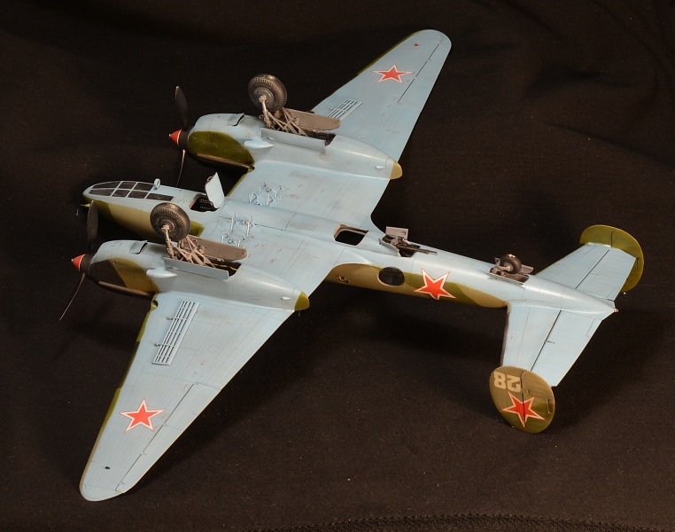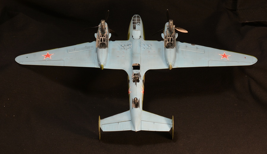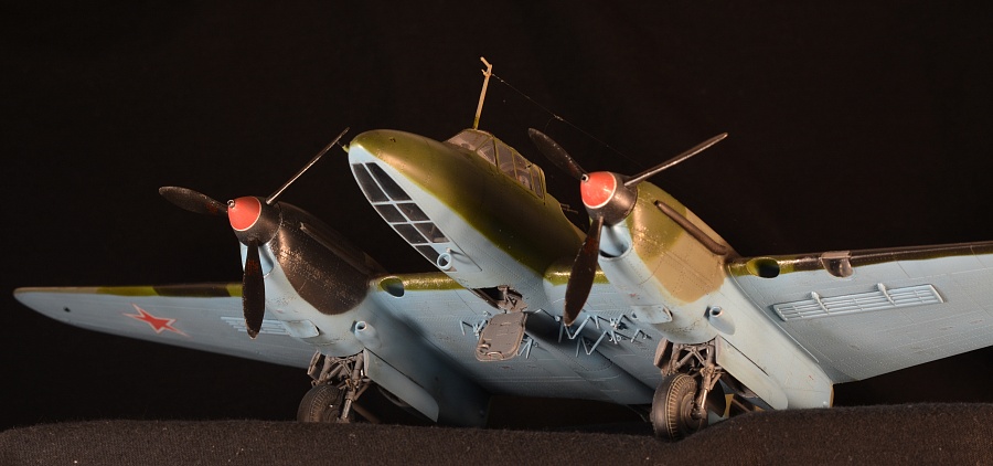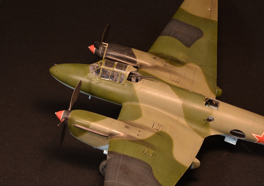 Добротно сделана "Пешка", очень понравился внутренний интерьер, хоть его и не увидеть, впрочем, как и на любом настоящем самолёте. Внесу свои "пять копеек" в обсуждение маленьких и приятных мелочей. Давно делал "Пешку" в 72 м масштабе и у меня там открывающийся люк экипажа с выдвигаемой подножкой. Так вот, на живом самолёте она подпружинена в убранном положении и на неё нужно наступить, чтобы она выдвинулась. Отсылаю любопытных к замечательному фильму "Хроника пикирующего бомбардировщика" - эпизод прилёта экипажа Архипцева из разведки.