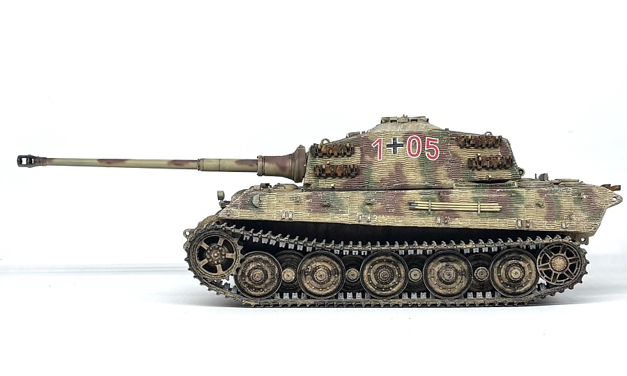 Здравствуйте ! Хочу представить вашему вниманию королевский тигр от звезды в 1/35 масштабе. Модель делалась в рамках гб «Немецкие кошки» на Модельная краска Pacific88. По модели. 1.Основной набор от звезды. 2.Сетки от Aber3.Крепления шанцевого инструмента от BSK Model 4. Циммерит от ATAK 5. Траки KGS 73/800 от T-Rex 6. Орудие, маска и ведущее от Panzerart Краски и визеринг Ak interactive Теперь к прототипу. Машина 1+05 из 506 тяжелого танкового батальона на момент сражения данного подразделения в долине реки Прюм в марте 1945 года. Известна по серии фотографий уже в американских руках. Всем спасибо и приятного просмотра!